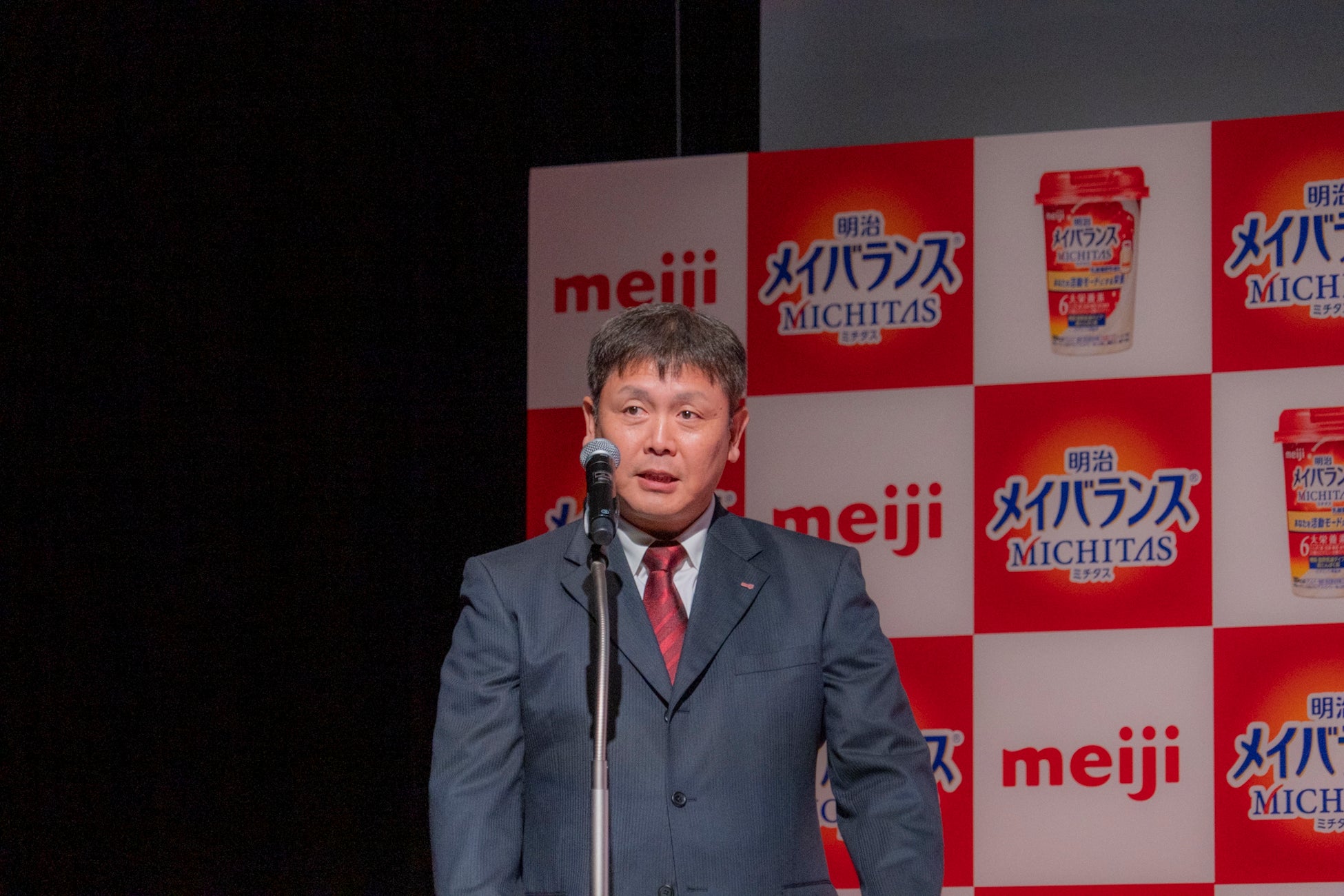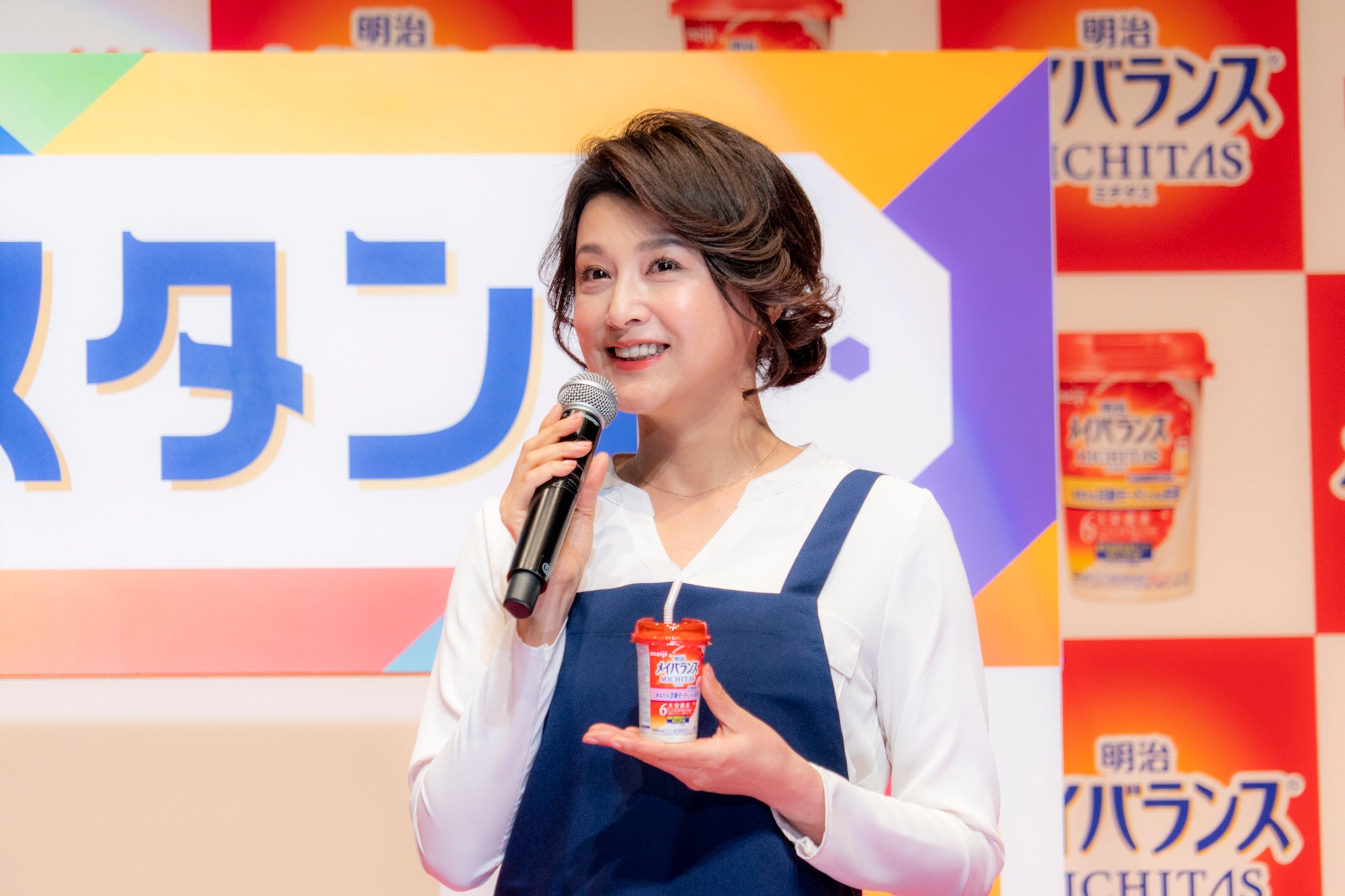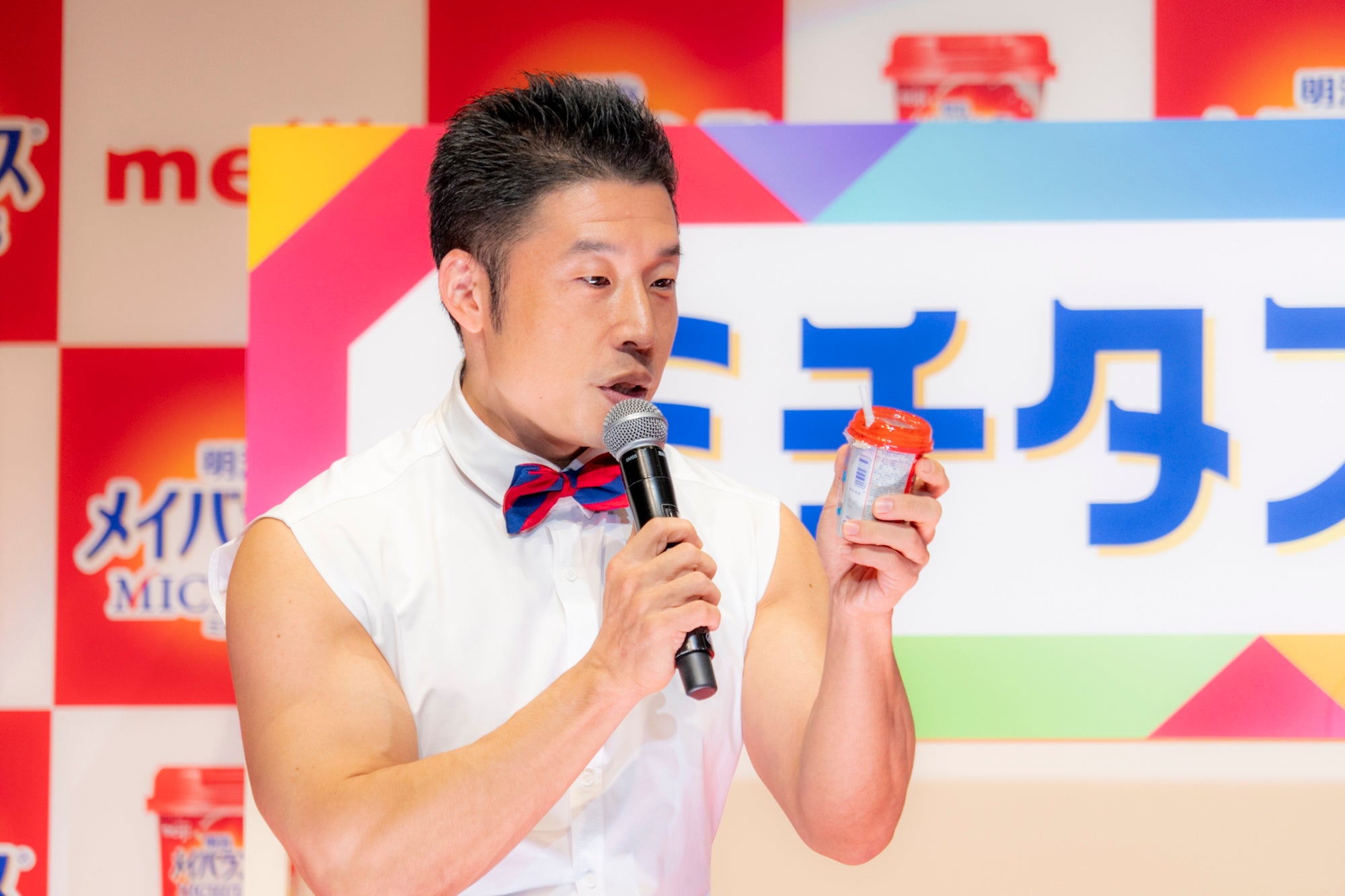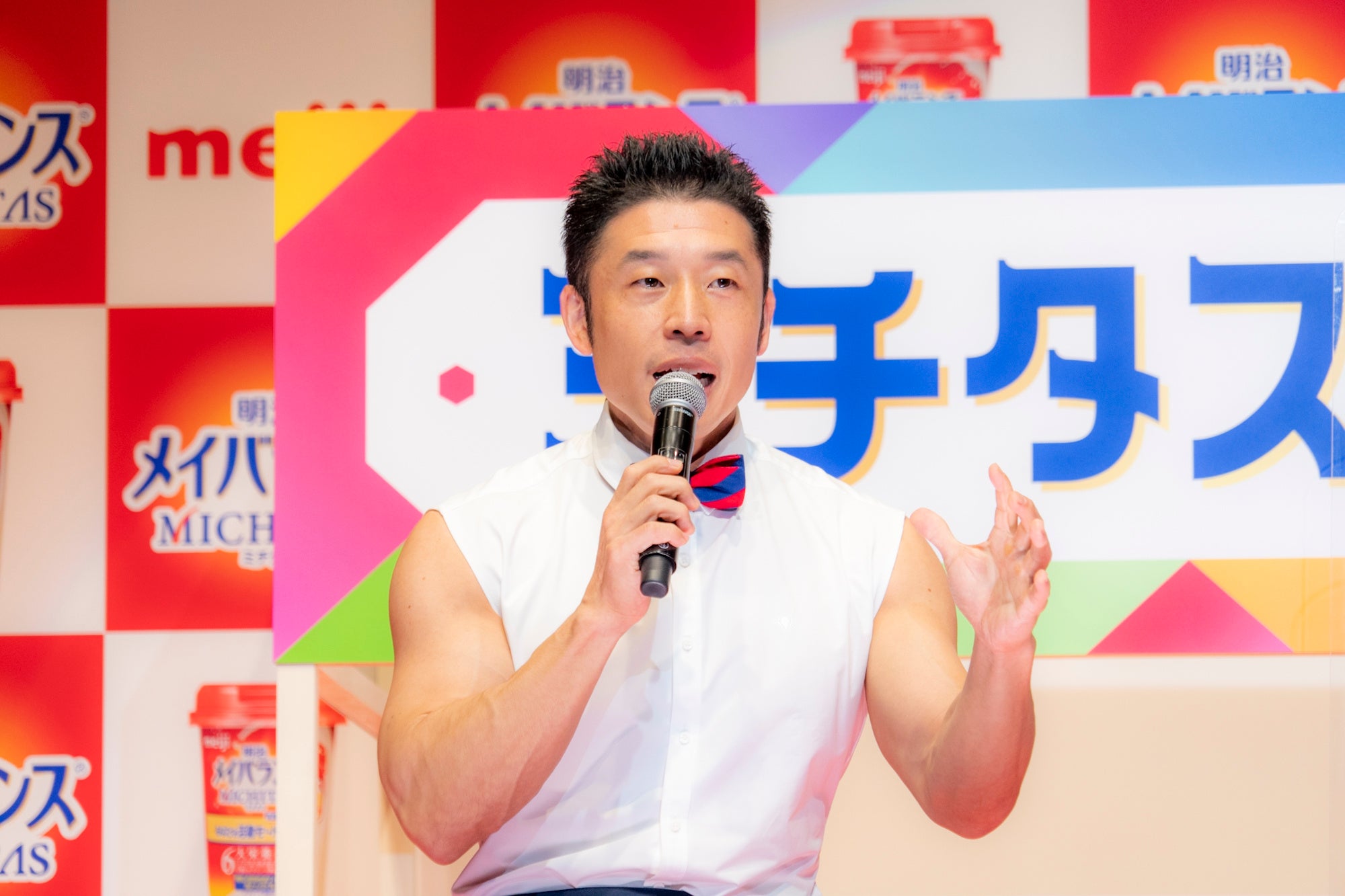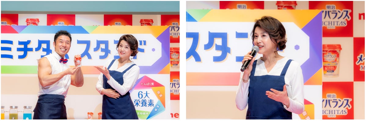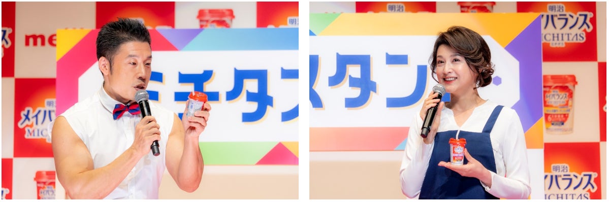 「いつまでも健康でいたい」という思いに応える新ブランド『明治メイバランスMICHITAS』持ちネタをかけ合わせた「ミチタスパワー!」披露