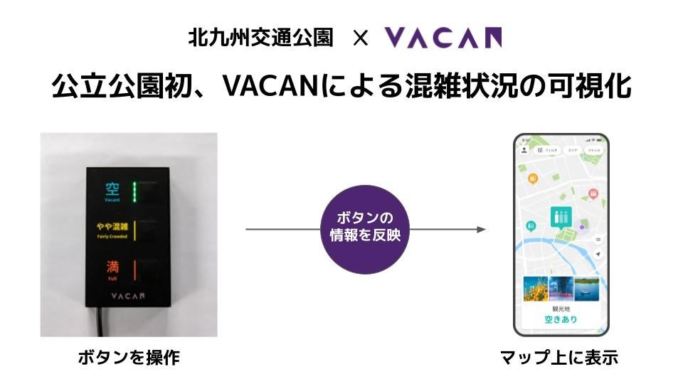 AI×IoTを活用してあらゆる空き情報を配信するスタートアップ、株式会社バカン(東京都千代田区、代表取締役:河野剛進、以下「バカン」)は7月8日より、北九州交通公園(福岡県北九州市)に、リアルタイム空き情報配信サービス「VACAN (バカン)」を導入いたします。空き/混雑情報はVACAN(https://vacan.com)のマップ上でご確認いただけるようになります。同公園は、交通ルールなどを自転車に乗って楽しみながら学べる特徴があり、VACANの導入により「新しい生活様式」のもとでの施設運営を試行されます。公立公園へのVACAN導入は初です。