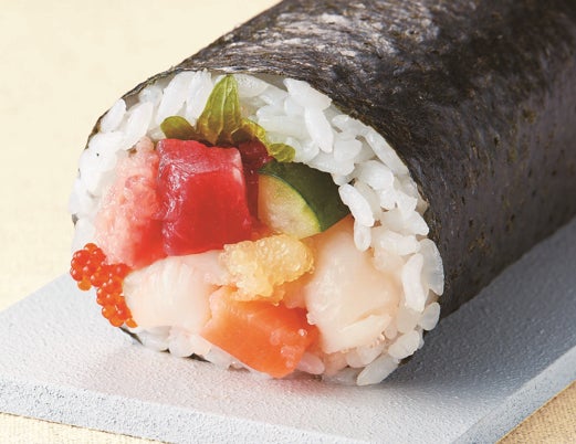 特長:8種類の海鮮ネタをバランス良く味わえる人気の海鮮巻。国産ほたての甘み、まぐろの旨さ、数の子の食感など海の幸を堪能できる素材を使用しました。