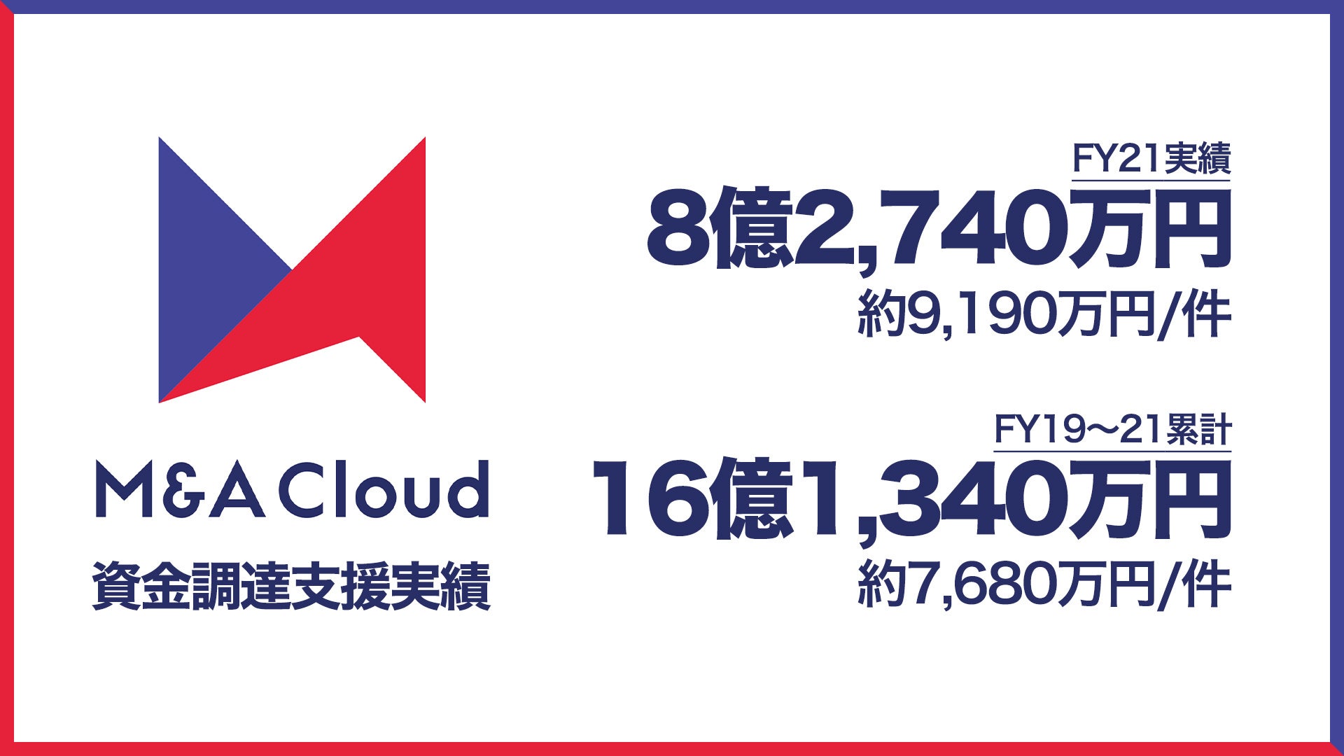 オンラインM&Aマッチングプラットフォーム「M&Aクラウド」を運営する株式会社M&Aクラウド( https://macloud.jp/ )は、プラットフォームにおける2019〜2021年度の資金調達支援実績が累計件数で20件、累計金額で約16億1,340万円、1件あたり約7,680万円だったことをお知らせいたします。なお、2021年単年度の資金調達支援実績は件数で9件、金額で約8億2,740万円、1件あたり約9,190万円となり、デーティング投資※需要の拡大を裏付ける結果となりました。