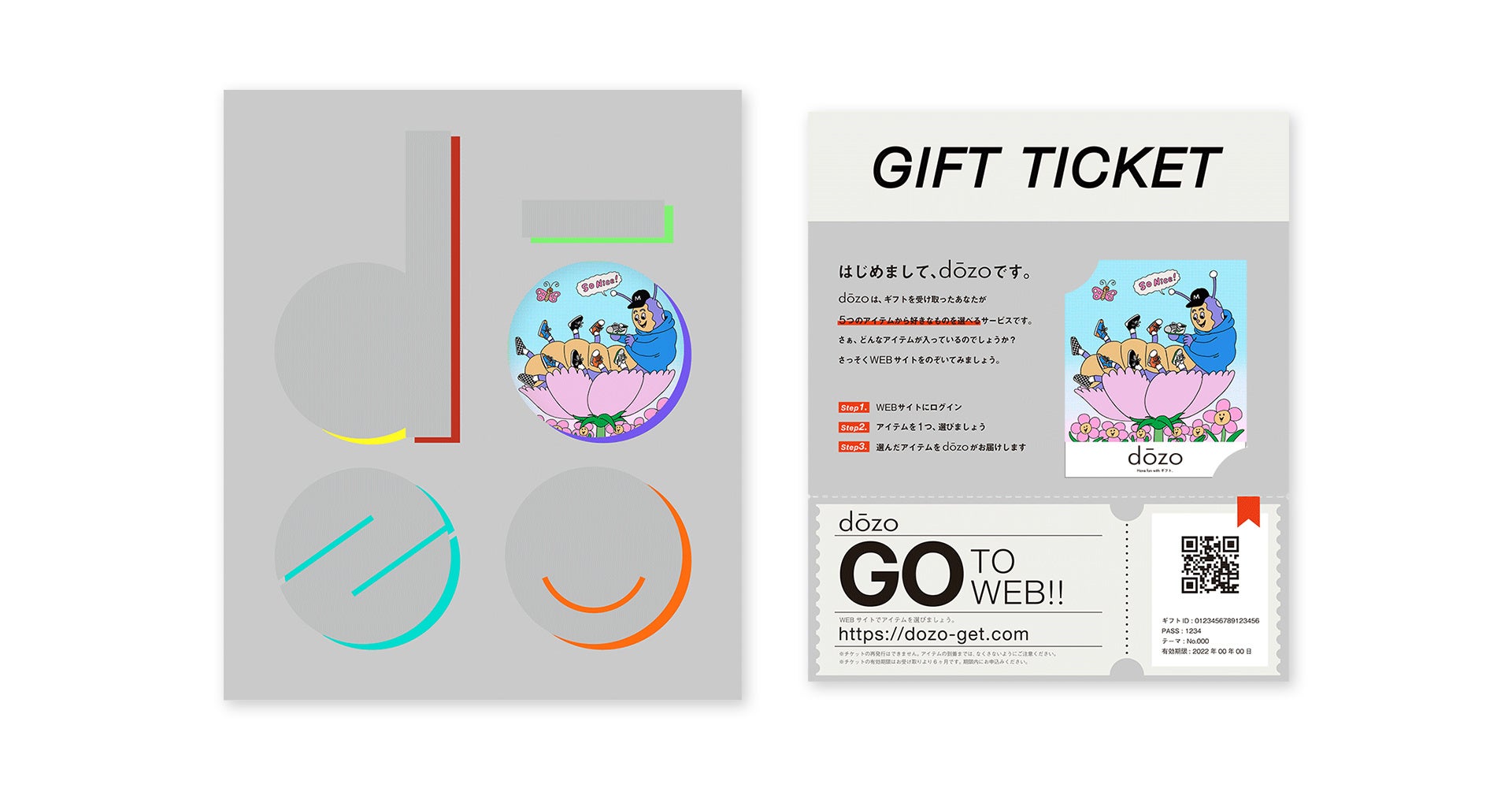 《dōzo》は、相手の個性や伝えたいメッセージに合わせて『テーマ』を贈るギフトサービスです。『テーマ』には5つのギフトが入っており、もらった人はWEBサイト上で好きなギフトを1つ選んで受け取ることができます。贈り方は、ソーシャルギフトのほか、手渡し可能な「ギフトチケット」もご用意しております。