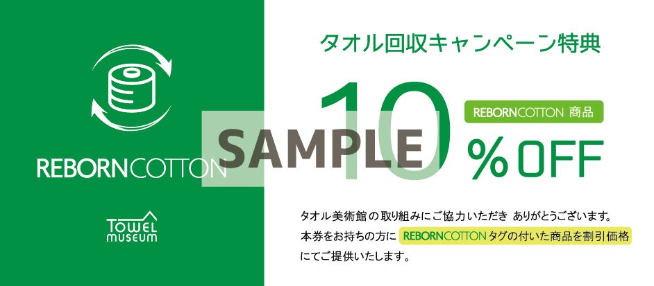 ※タオルの回収、回収キャンペーンは店舗のみの期間限定開催となります。(回収キャンペーンでお渡しした10%OFFチケットは、有効期限がございます。期間内にご利用ください。)