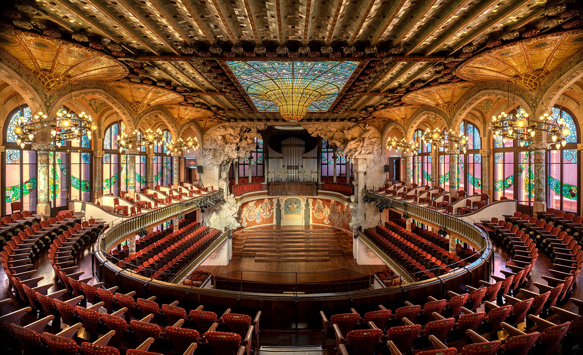 スペイン・バルセロナの中心に位置するカタルーニャ音楽堂は、建築家リュイス・ドメネク・イ・ムンタネーの代表作。色彩豊かなモザイク装飾、天井から差し込むステンドグラスの自然光、そして豊かな音響を誇るコンサートホールが織りなす空間は、「世界で最も美しい音楽ホール」とも称されています。
