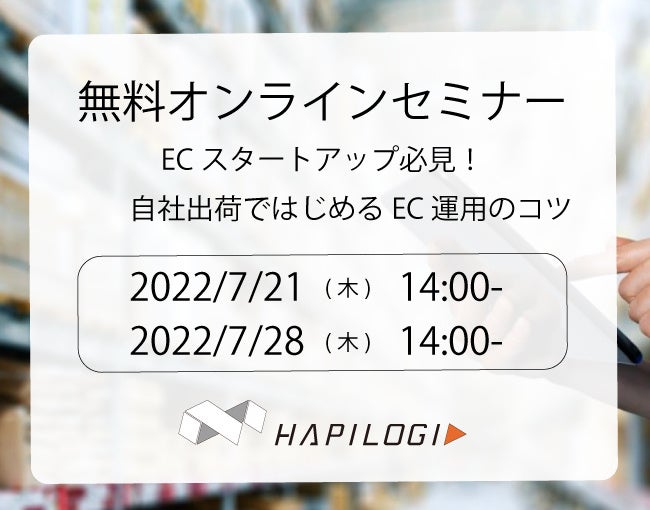 流通インフラプラットフォームサービスを展開する株式会社はぴロジ(所在地:東京都港区虎ノ門、代表取締役社長:木村 和弘、URL:https://www.hapilogi.co.jp、以下「はぴロジ」)は2022年7月にオンラインセミナーを開催いたします。