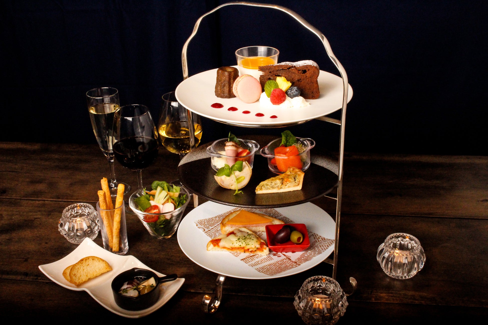 アフタヌーンティースタイルでワインとともに軽食やデザートをお楽しみいただけます。レストランコルトの落ち着いた雰囲気で、ゆったりとしたお時間をお過ごしください。