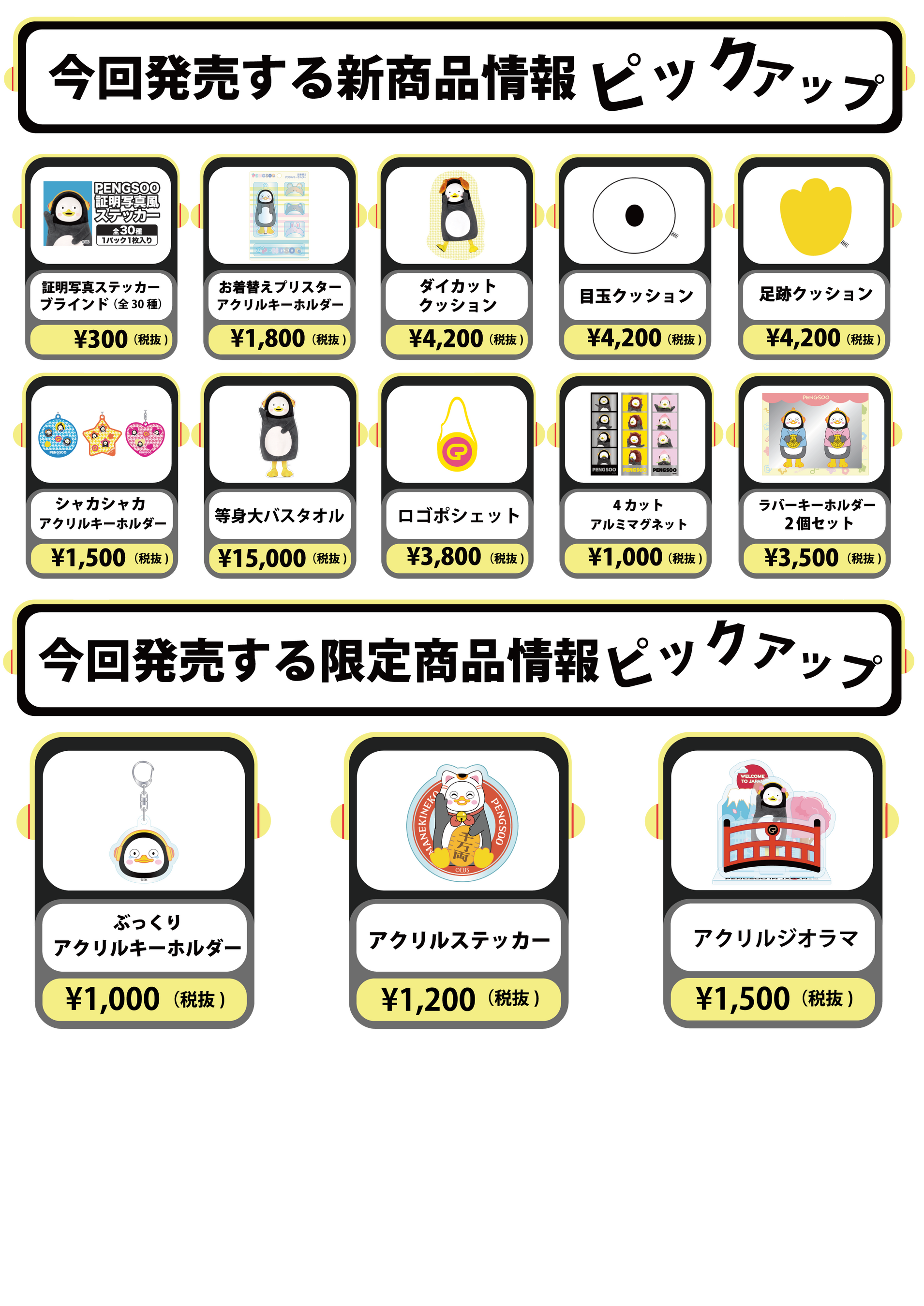 税込3,000円以上ご購入ごとに(1会計につき) ● PENGSOO Meet & Greet 参加チケット抽選に1回ご参加いただけます。 ※EPOSカードご利用・ご提示で、さらにもう1回抽選可能! ● 描きおろしステッカーを1枚プレゼント |