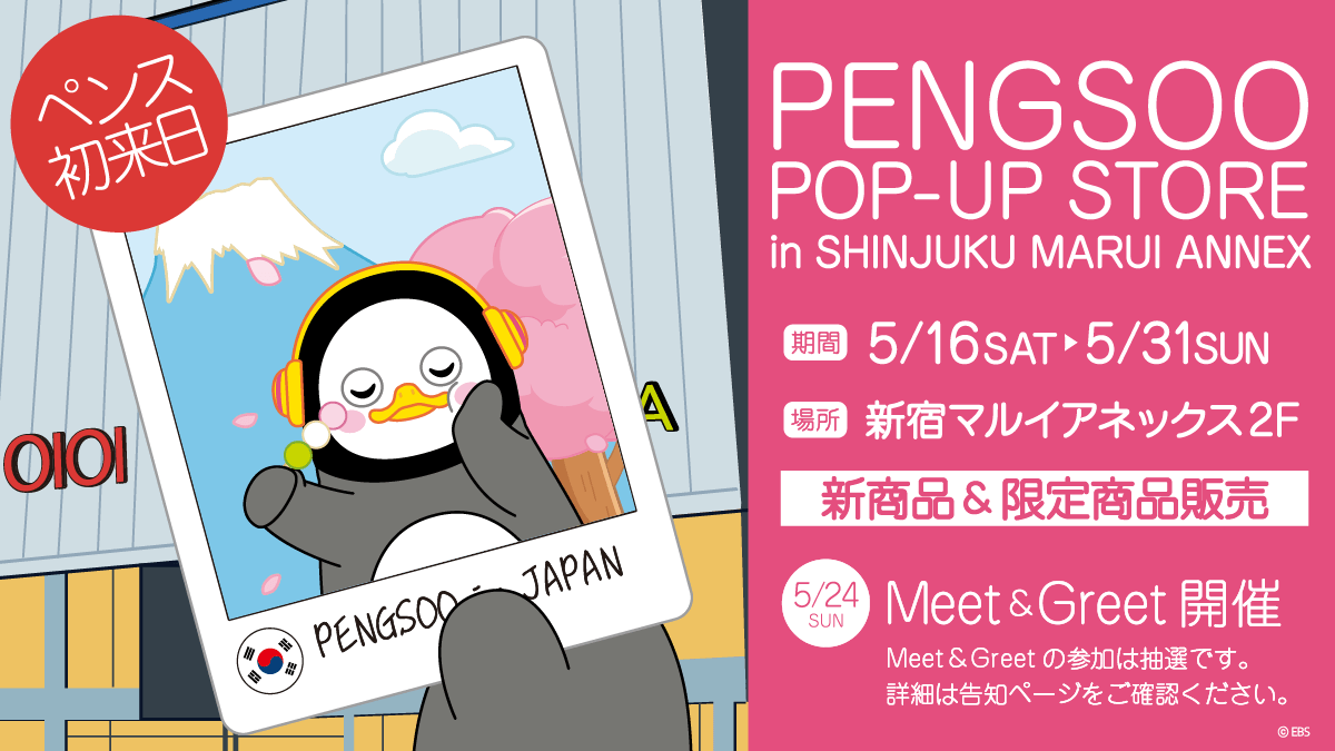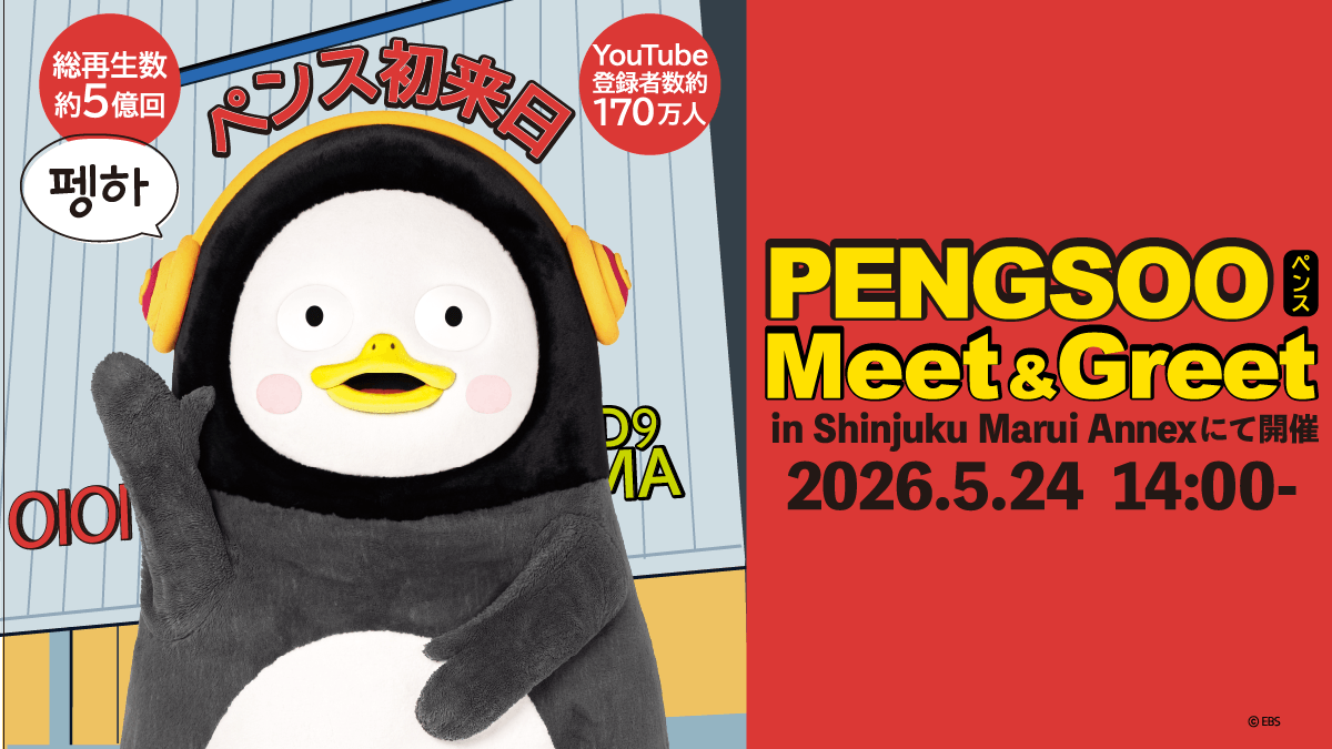 雑貨の企画・デザイン・製造を行う、株式会社ZEN(代表:山喜多 邦夫)は2026年5月16日より新宿マルイアネックス2Fにて韓国EBSの人気クリエイターPENGSOOのポップアップストアを開催する。株式会社ZENは2023年より韓国のEBS社とMDライセンス契約を締結し、日本国内でのPENGSOOビジネスを主導してきた。本事業の中核プロジェクトとして5月16日より始まる本イベントは、公式グッズや多彩なイベントを一堂に会した、大祭典となる見込みだ。