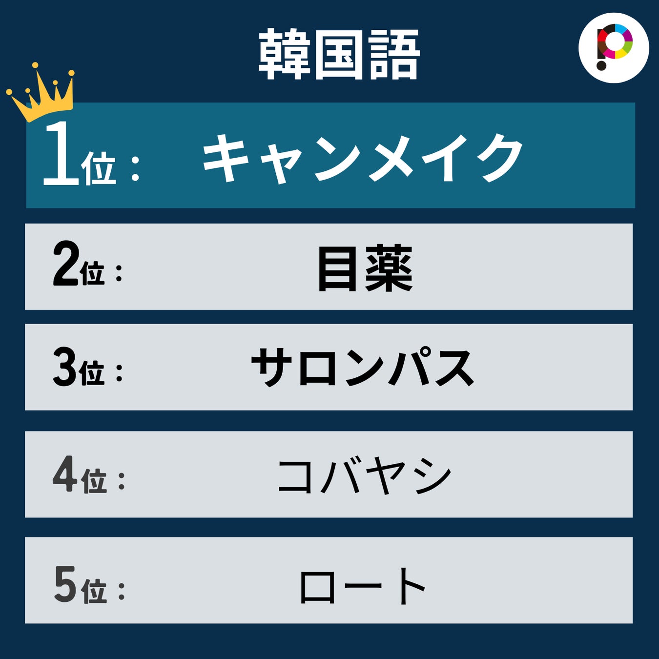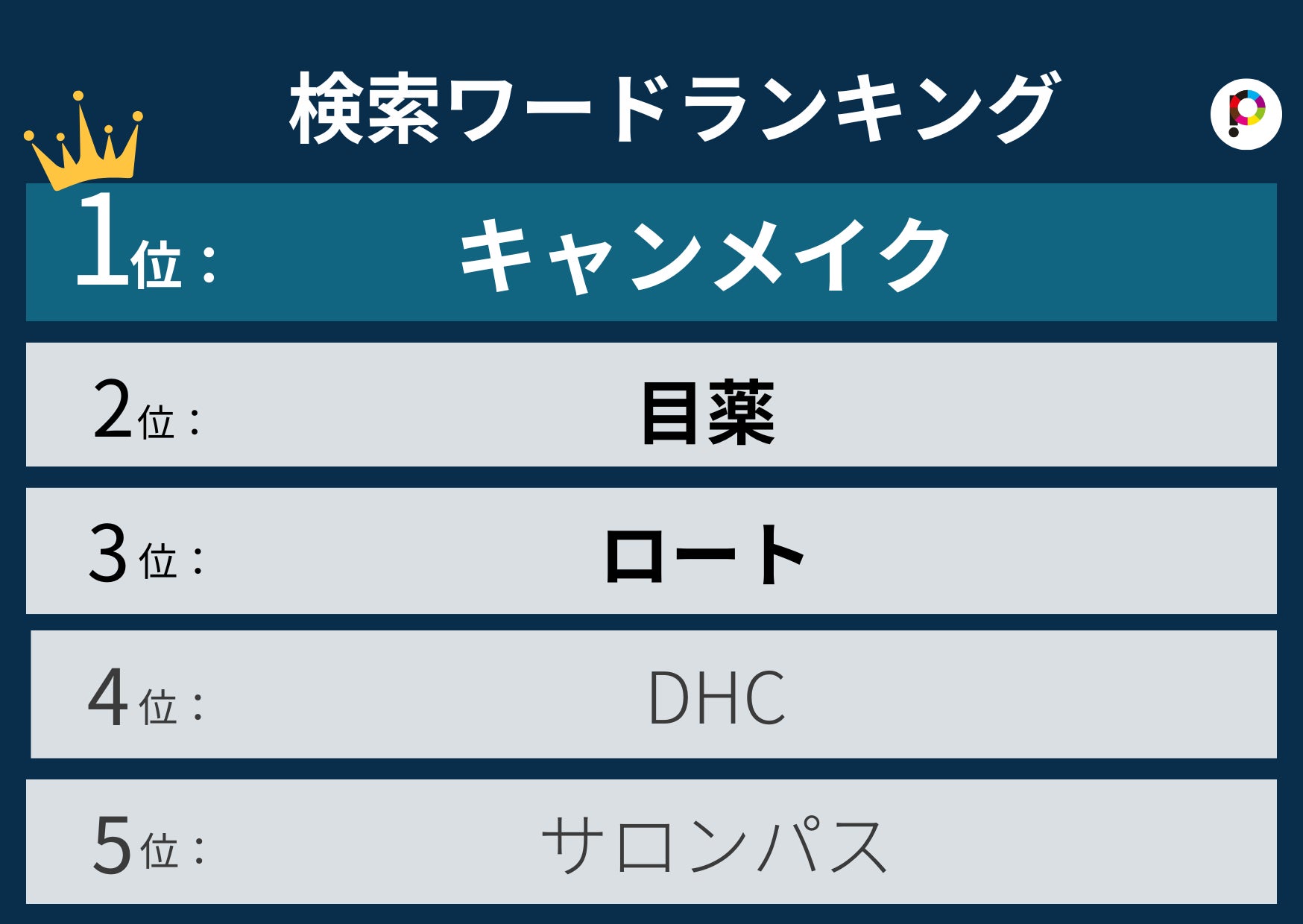 まず、日本を訪れる外国人観光客の中で最も多い韓国の関心が高い「キャンメイク」の関連ワード検索ランキングを発表いたします。