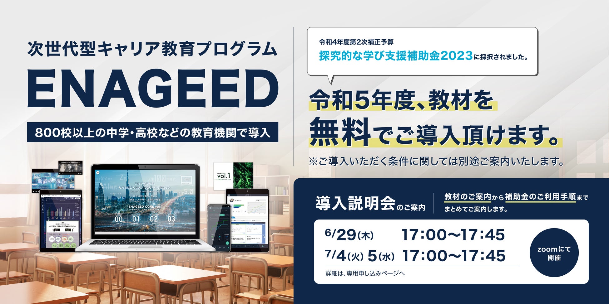 ■「探究的な学び支援補助金2023」のご案内 ■次世代型キャリア教育「ENAGEED CORE」のご紹介  |