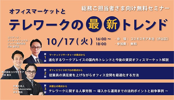 賃貸オフィスマーケット、オフィス空間、人事労務の3つの観点からハイブリッドワーク時代のワークプレイス戦略を考えるセミナー開催