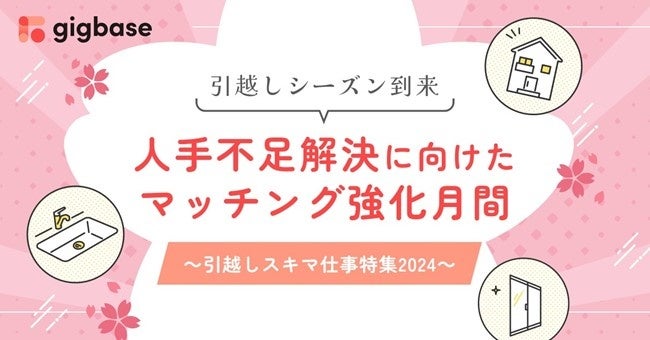 こうした引越しシーズンの不動産業界の人手不足解決のため、当社は「gigbase(ギグベース)」を通じた、案件とタレントの皆様とのマッチング強化月間を実施いたします。