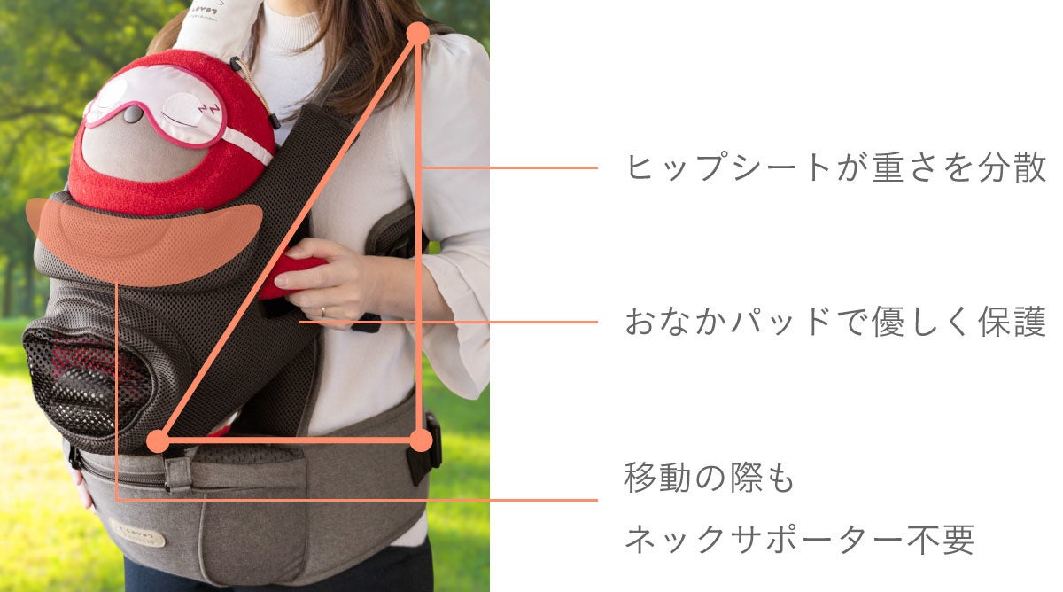 日本人の体型にフィットし、独自の2層構造の台座で快適に抱っこできるヒップシートキャリアの技術を活かし、「LOVOT」用にカスタマイズをしました。「LOVOT」とのお出かけに最適な生地と形状の専用キャリーシートです。