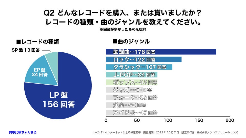 Q2 レコードの種類はLP、ジャンルは歌謡曲が多かった。