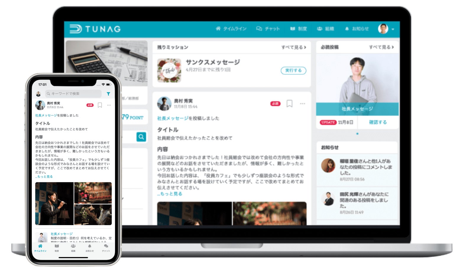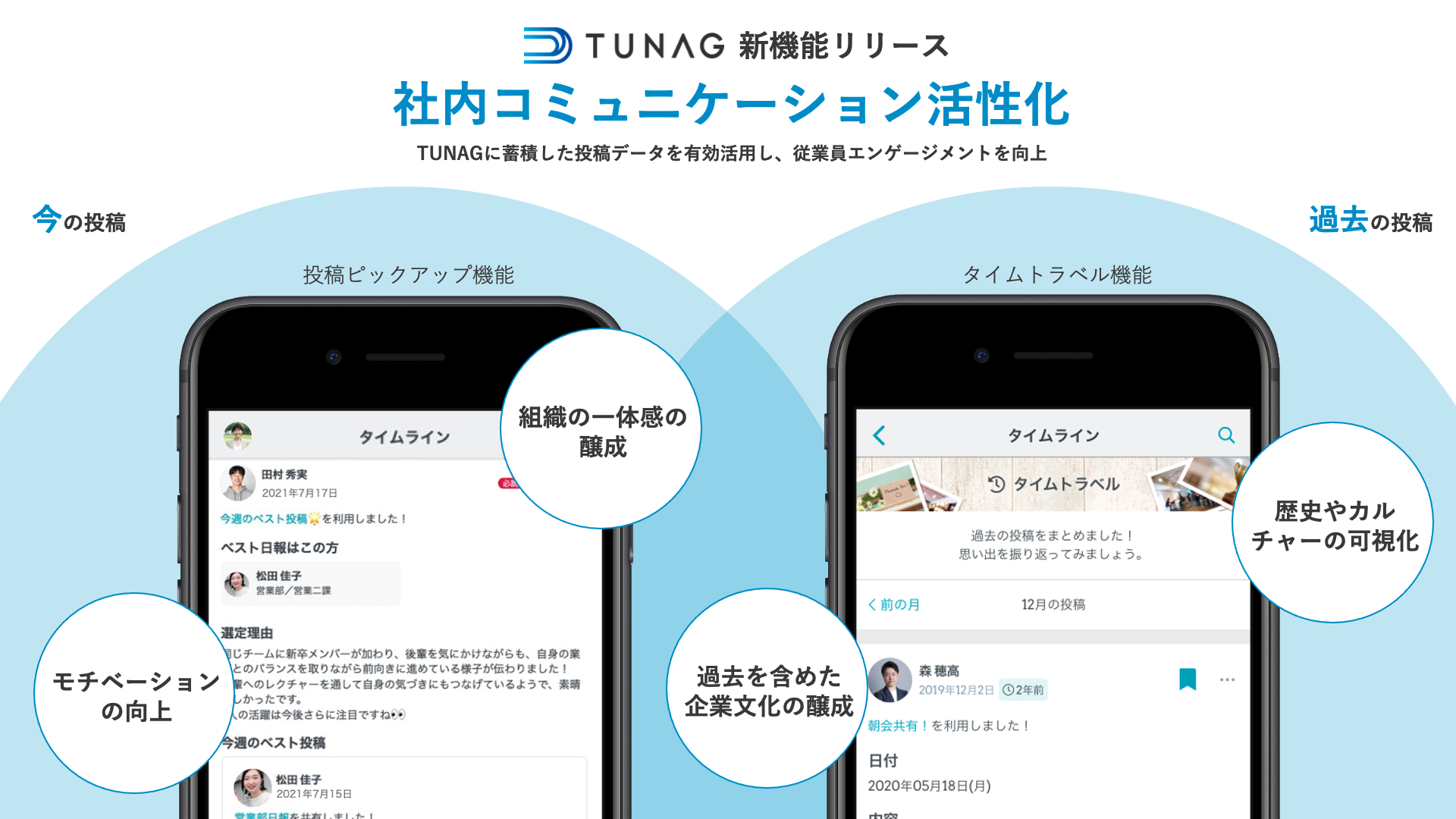 エンゲージメント経営プラットフォーム「TUNAG」、社内コミュニケーションを活性化させる新機能をリリース