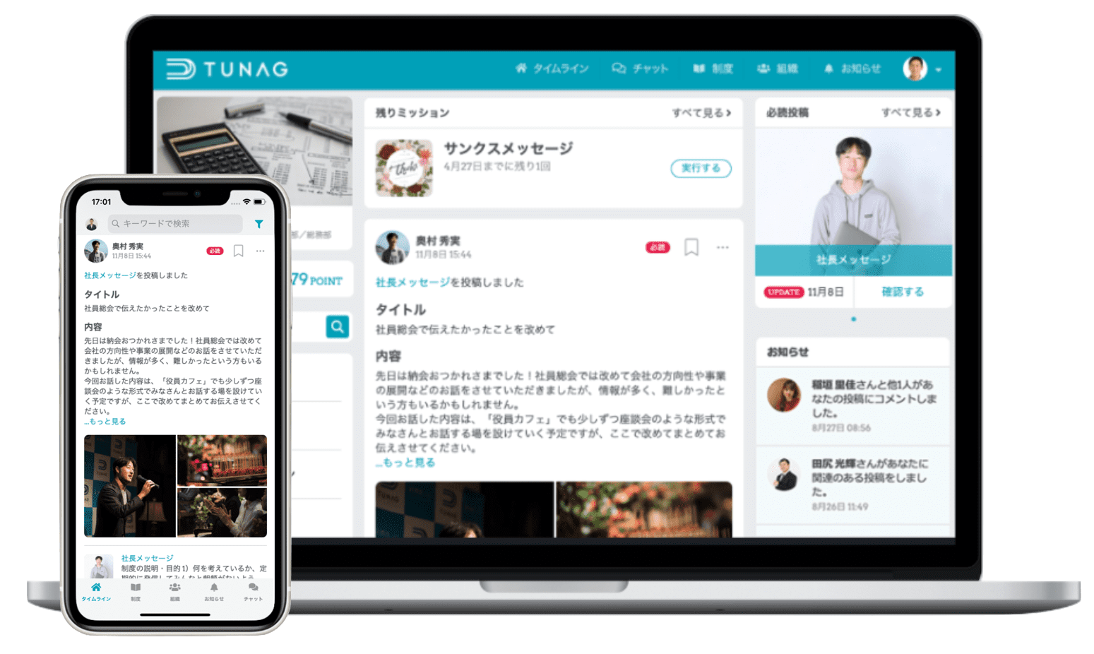 『TUNAG』 エンゲージメント経営プラットフォーム https://tunag.jp