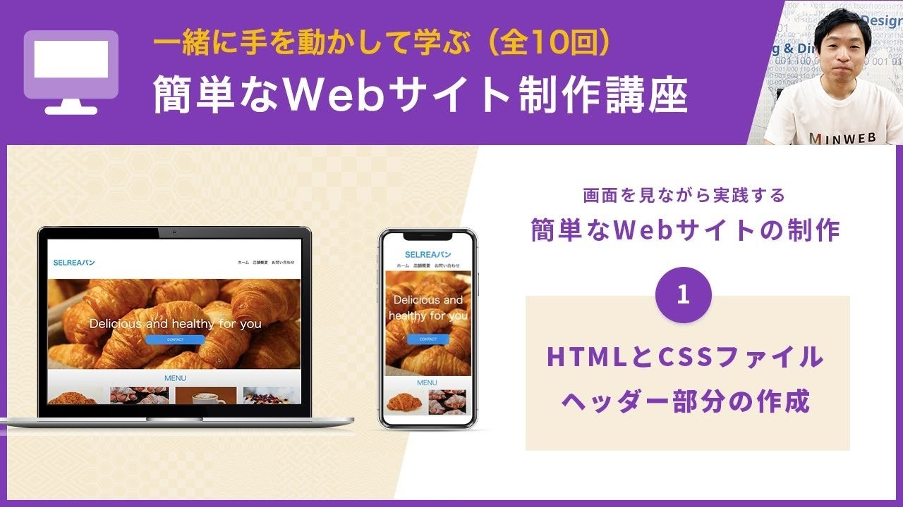 HTML・CSSを使って簡単なホームページを作成する動画シリーズではパン屋のサイトをモチーフに基礎的なWebサイトを制作します。