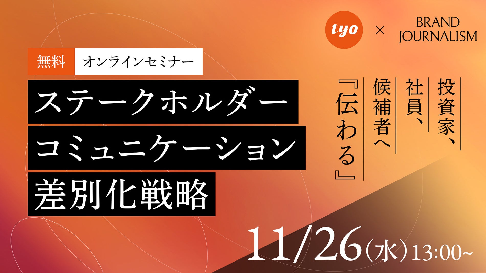 TYOとBJ社は、協業開始に伴い、経営層・IR担当者・広報担当者・人事担当者を対象とした無料オンラインセミナーを共催いたします。