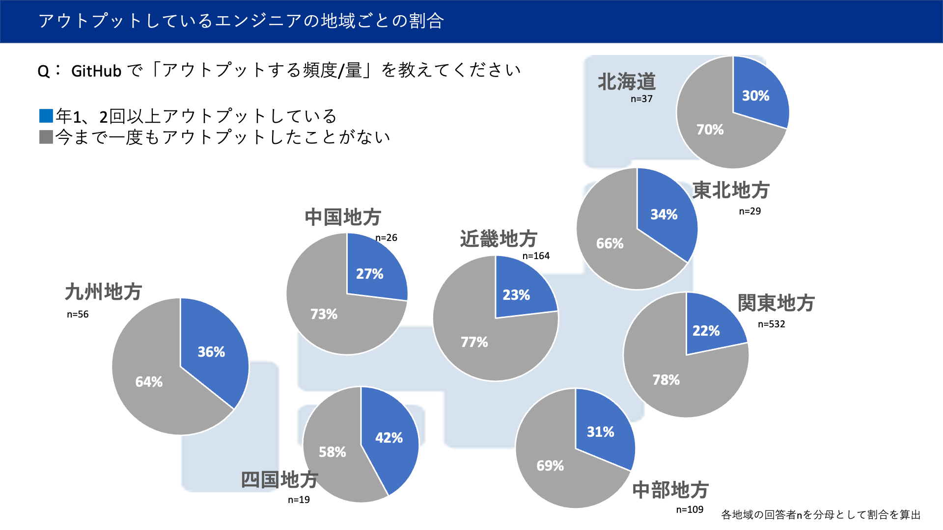 ■GitHubにアウトプットしているエンジニアとしていないエンジニアの居住地域ごとの比較