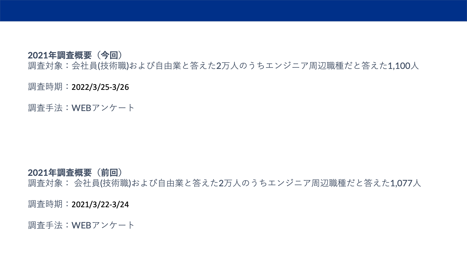 調査対象:会社員(技術職)および自由業と答えた2万人のうちエンジニア周辺職種だと答えた1,100人