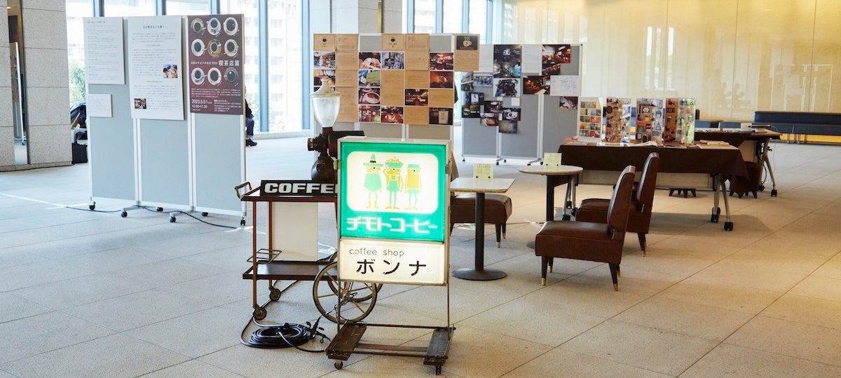 エントランスにて、明治大学の学生らによる神保町交差点に建つ出版社ビル設計展示も行います。