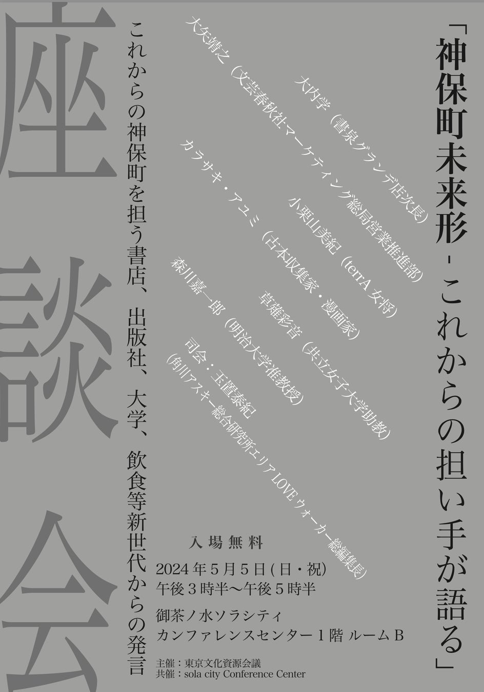これからの神保町を担う書店、出版社、大学、飲食店等新世代から、これからの神保町の未来について議論します。