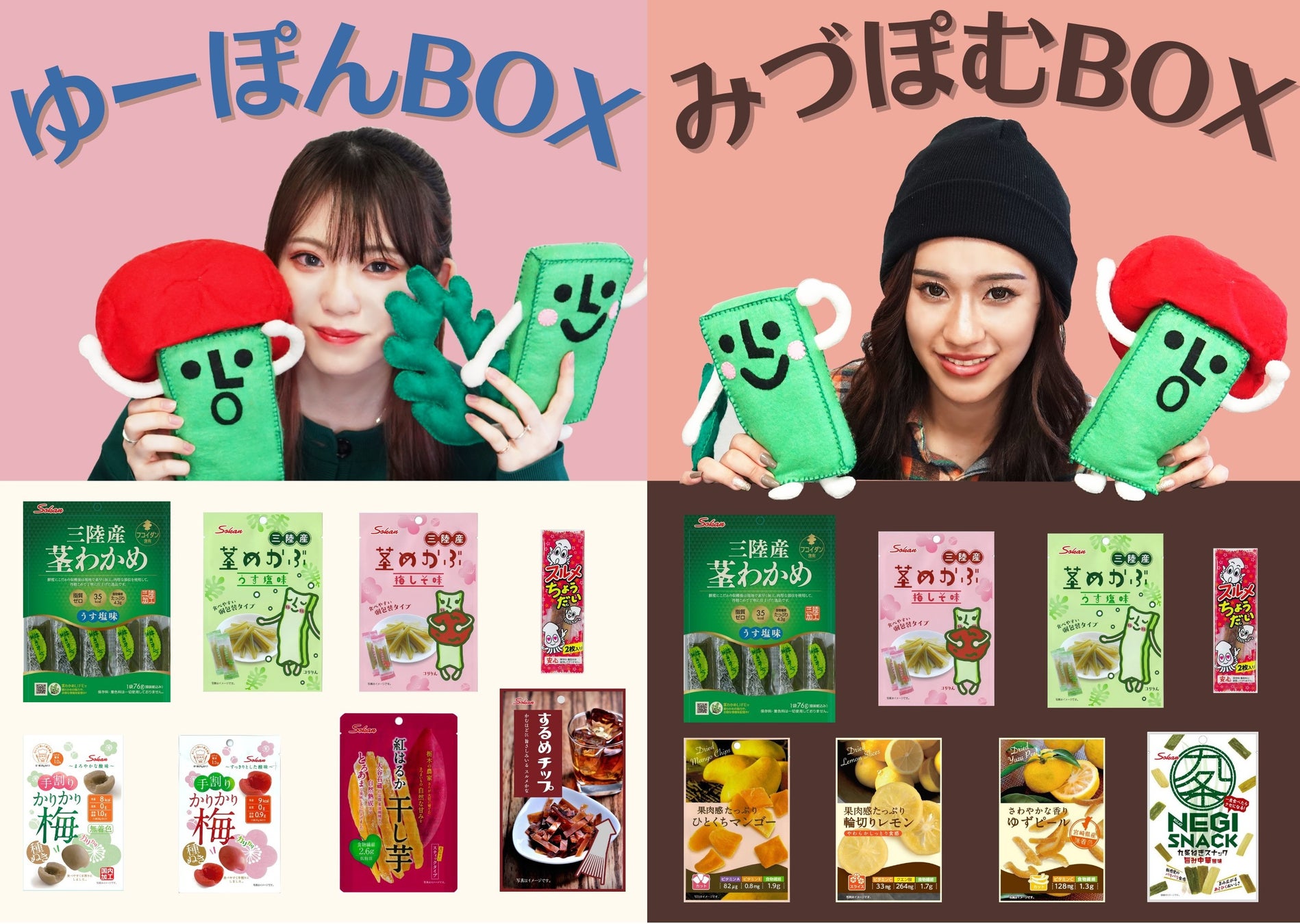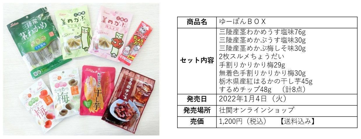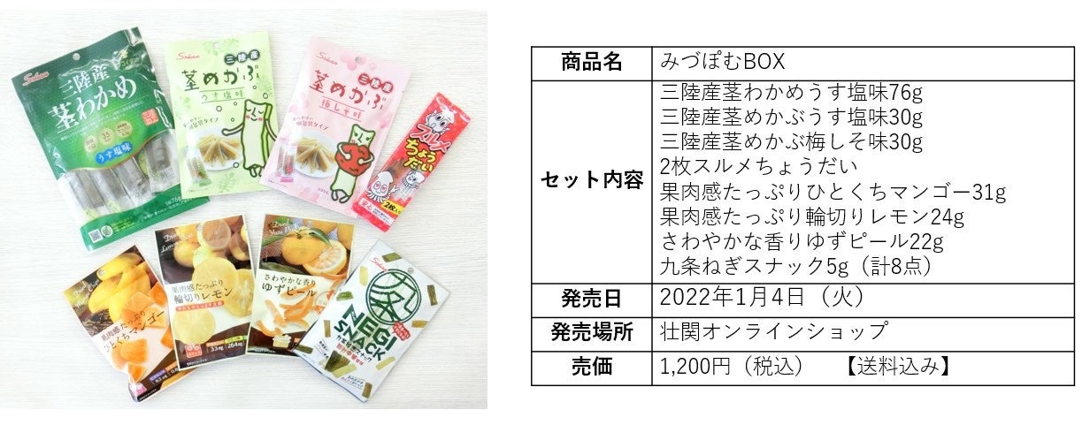 茎わかめアンバサダーおすすめの素材菓子が食べられる!『ゆーぽんBOX』『みづぽむBOX』2022年1月4日(火)より壮関オンラインショップで発売開始