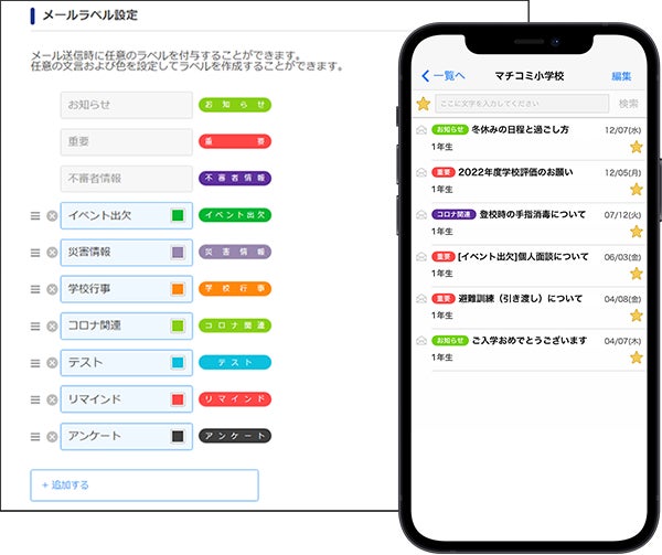 そこで、施設・保護者間のメール連絡を効率化するため、新たに「ラベル機能」を追加しました。