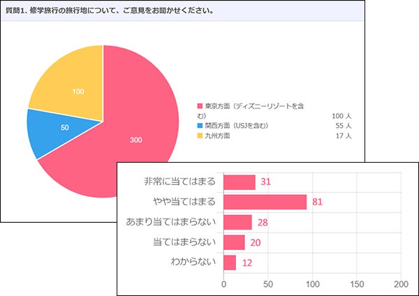学校評価や保護者アンケート等、大規模なものから普段の保護者向けのものまで、様々な形式のアンケートを自由に作成することも可能です。