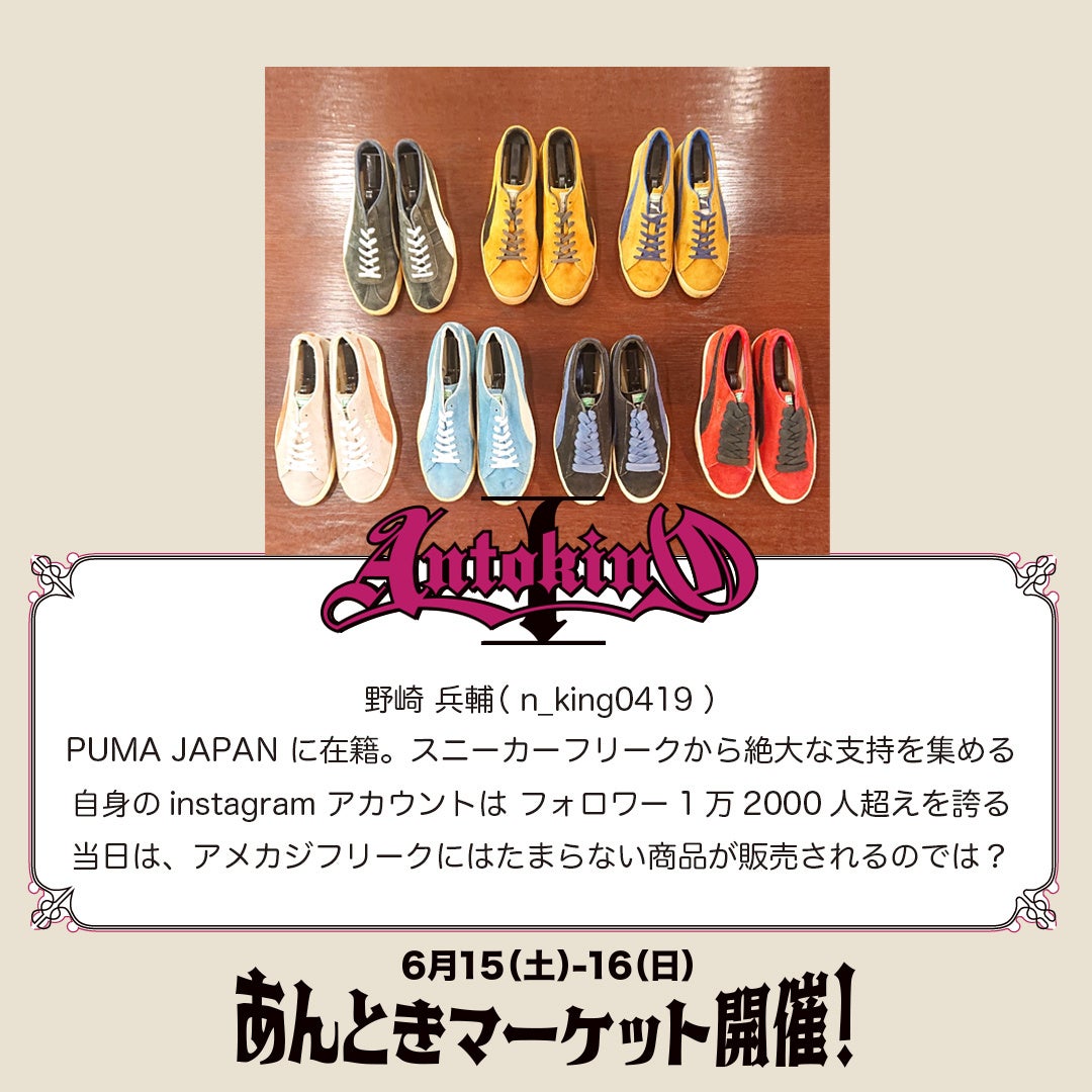 PUMA JAPAN に在籍しつつ、スニーカーフリークから絶大な支持と人気を誇る野崎さん。自身の instagram アカウント n_king0419 は フォロワー1万2000人超えを誇り、貴重なシューズコレクションを楽しむことができる。当日は、アメカジフリークにはたまらない商品が販売されるのでは?