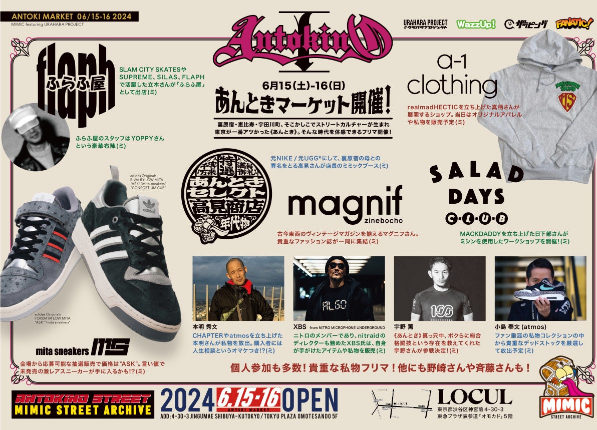 名前の通り、コンセプトは《 あんとき 》。 裏原宿・恵比寿・宇田川町といった、東京のそこかしこでストリートカルチャーが生まれ、東京が一番アツかった 《あんとき》 を体感できるフリマイベント。参加してくれるのは、もちろん 《 あんとき 》 を作り上げてきたブランド・ショップ・そして個人の方々
