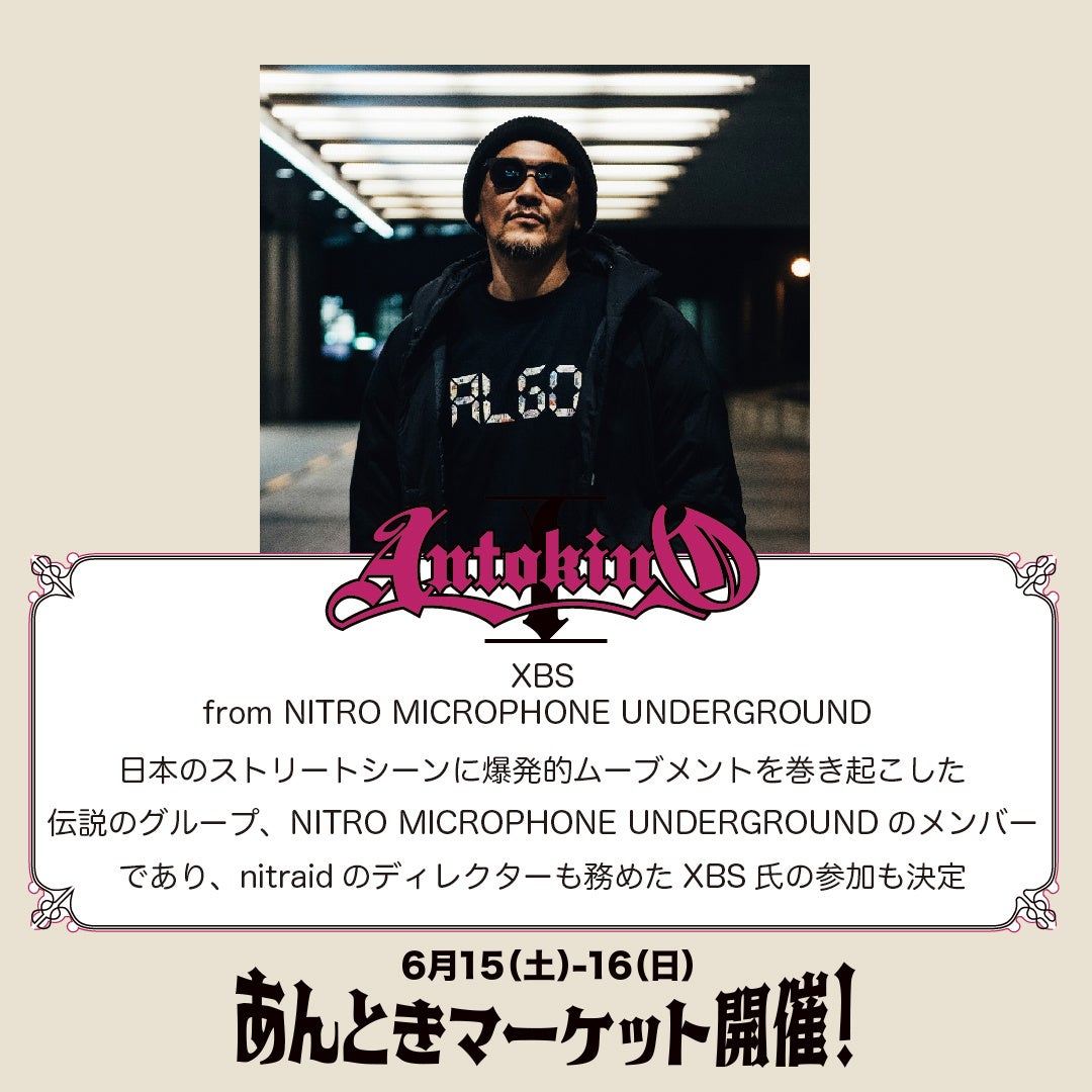 日本のストリートシーンに爆発的ムーブメントを巻き起こした伝説のグループ、NITRO MICROPHONE UNDERGROUNDのメンバーであり、nitraid のディレクターも務めたXBS氏の参加も決定。当日は自身が手がけたアイテムや私物を販売予定
