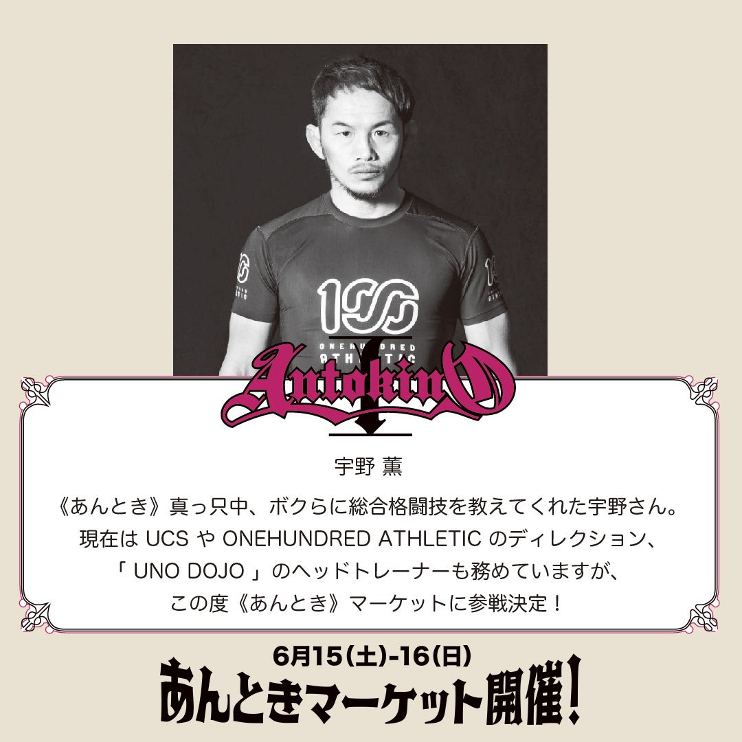 総合格闘技の黎明期であった《 あんとき 》真っ只中、ボクらに総合格闘技を教えてくれたのは、ヒロシさんであり、宇野さんでした。現在は UCS や ONEHUNDRED ATHLETIC のディレクションをしながら「 UNO DOJO 」のヘッドトレーナーも務めていますが、この度《 あんとき 》マーケットに参戦決定!