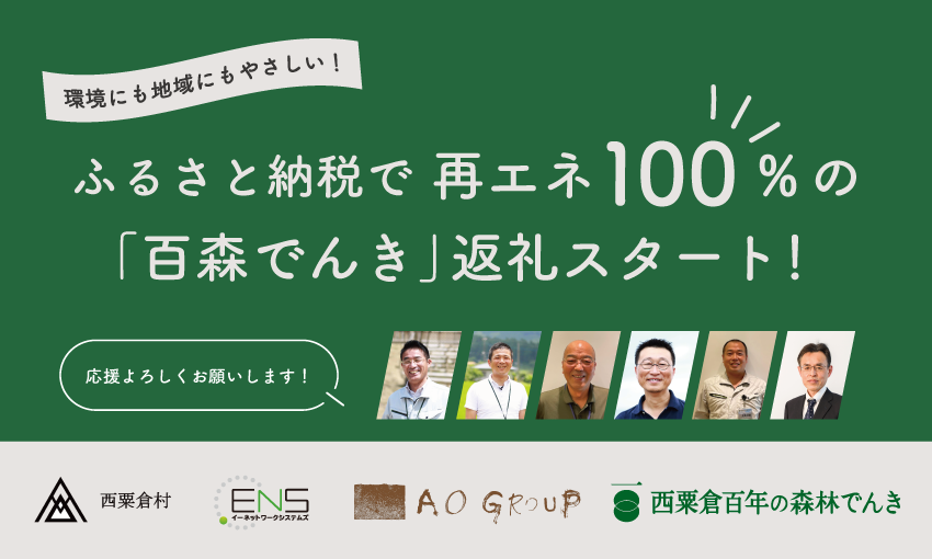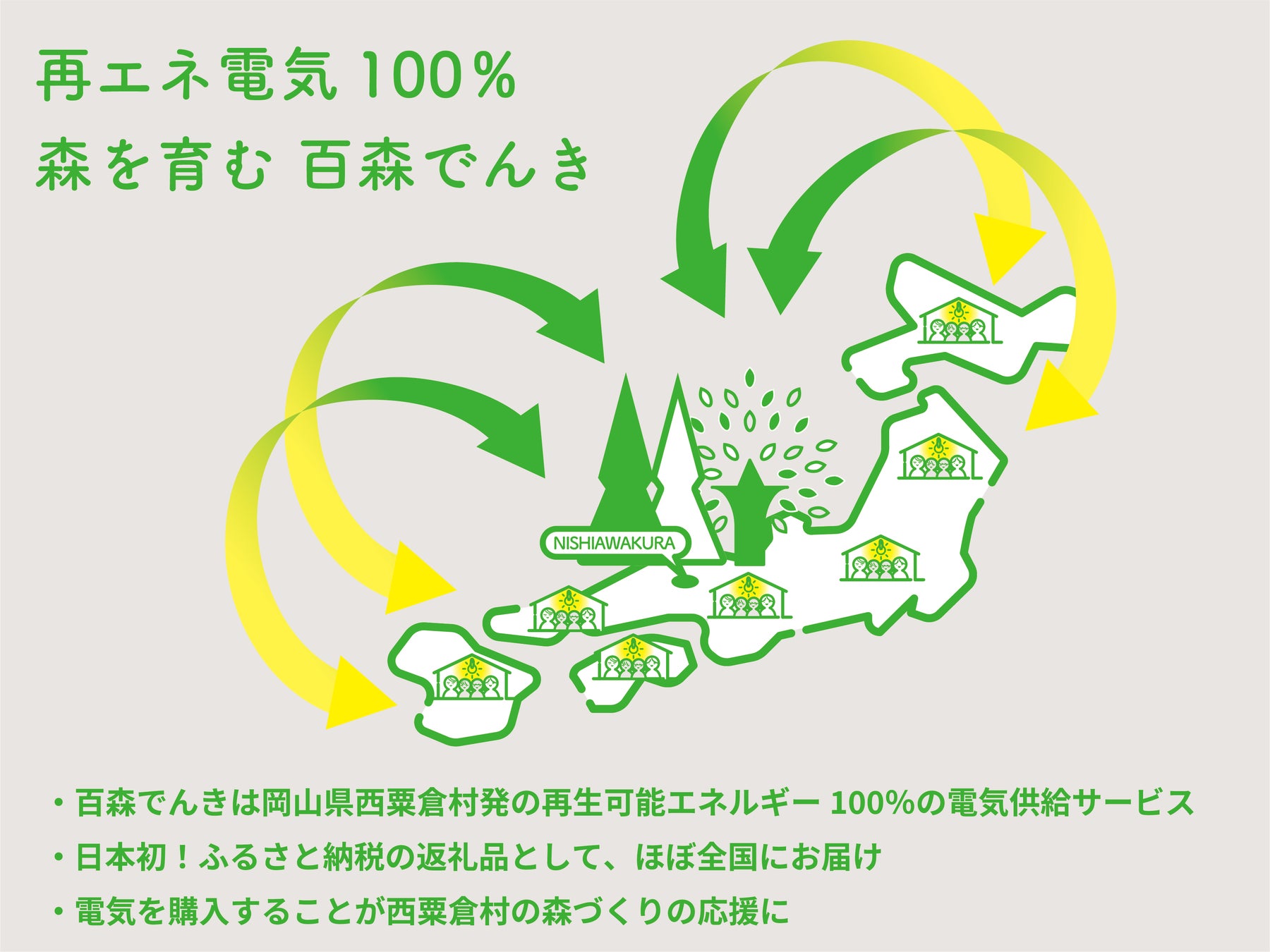 日本初、ふるさと納税の返礼品としてほぼ全国にお届けできる再エネ100%の電気供給サービス「百森でんき」が販売開始
