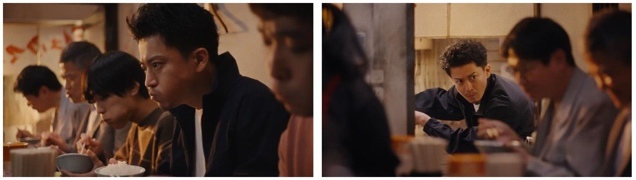 ある日の夕方、路地裏で年季の入ったシュウマイ店の看板を目にした小栗さん。店内を覗き込むと、カウンター席しかない狭いお店のお品書きは「シュウマイ」と「めし」の2つだけ。せいろから湧き出る香りに誘われて、さっそく中に入って「シュウマイ」と「めし」を注文します。ひと口食べた瞬間、その旨さに圧倒された小栗さんは、無我夢中でシュウマイと白飯をかき込み、口の中は毎回パンパンの状態に。それでも小栗さんの箸は止まることなく、シュウマイと白飯を口いっぱいに頬張り、「これが家で食えたなら…」と想像します。ここで「食えます」「今夜食卓で」というナレーションとともに、商品ディスプレイがインサートし、小栗さんが食べているシュウマイ=「ザ★®シュウマイ」が、食卓で気軽に食べられることを伝えます。