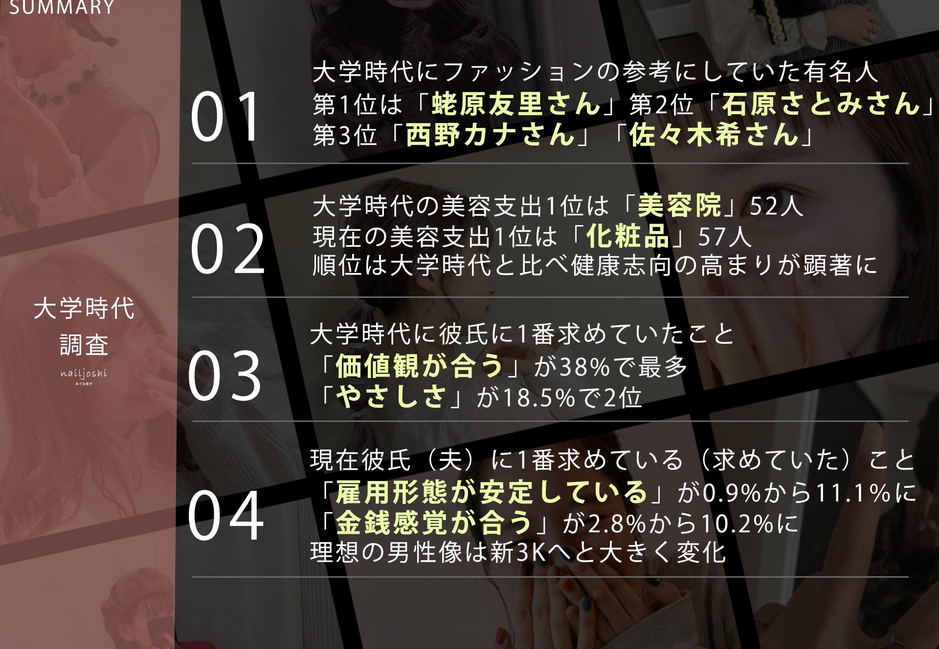 時代とともに変化する、女性のライフスタイルや価値観。特に大学時代から社会人になる過程で、美容への投資や恋愛観は大きく変わると言われています。