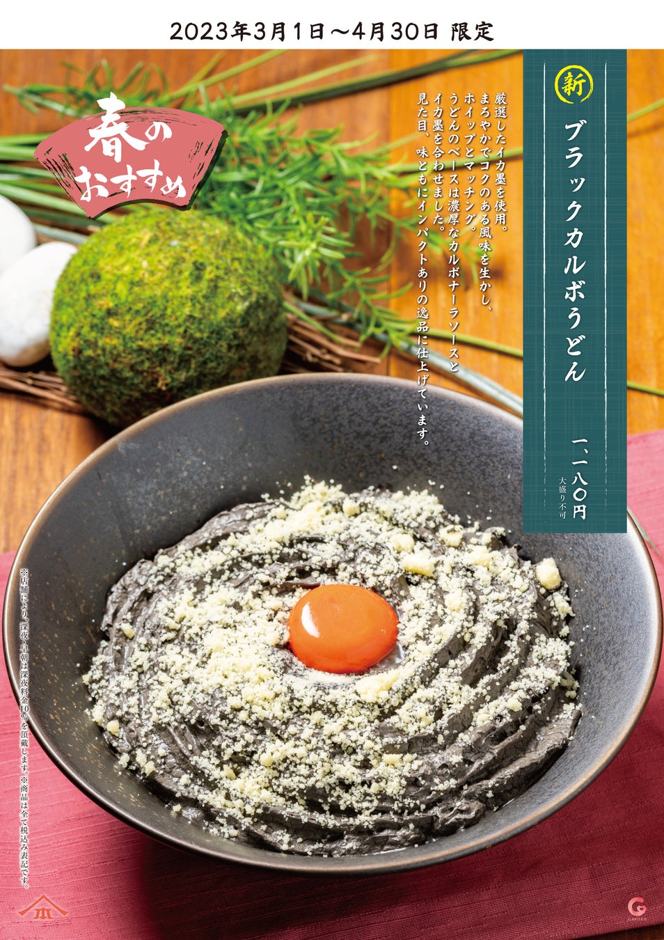 SNSで話題の“白いうどん”が、”真っ黒なうどん”に大変身! 2023年3・4月限定『ブラックカルボうどん』が新発売‼