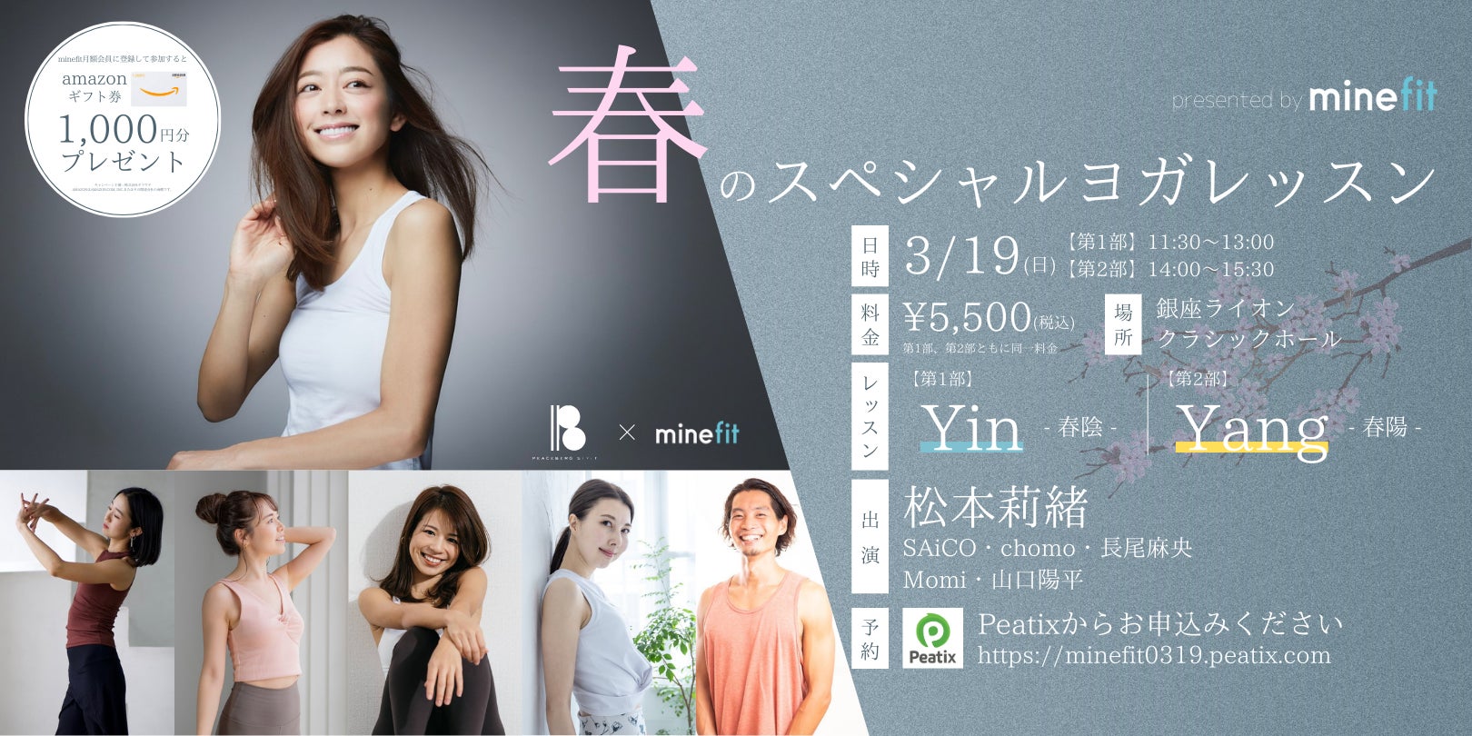 【松本莉緒さん出演!】3月19日(日) 人気講師6名によるminefit春のスペシャルヨガレッスンを初開催【リアルイベント】