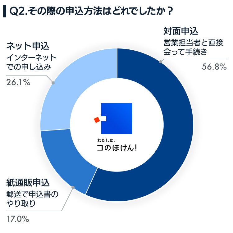 - 最多は「対面申込(営業担当者と直接会って手続き)」 56.8%