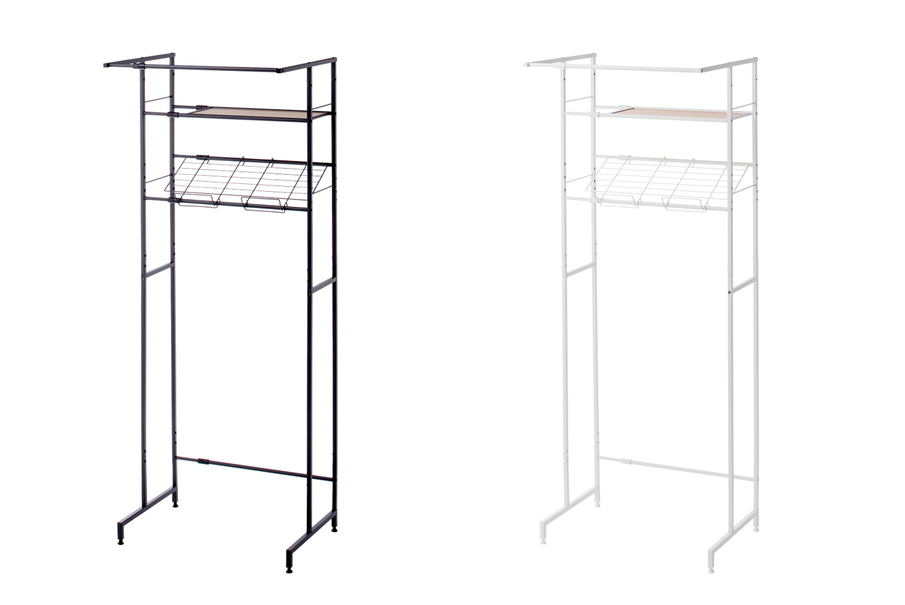■洗濯機ラック ハンガーバー付き マットホワイト/マットブラック