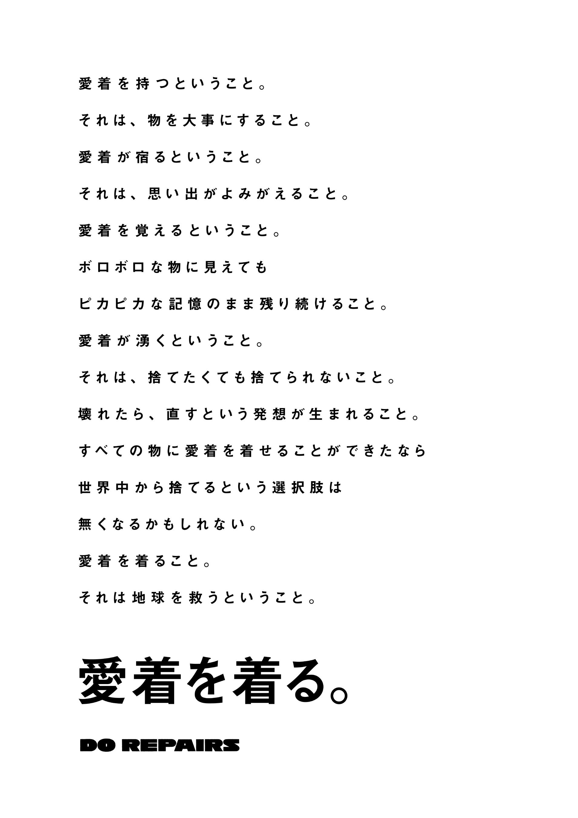 DO REPAIRSは、渋谷・原宿に根づく多様なブランドやクリエイター、学生やボランティアまでが一体となり、“直して使う”文化を広げるイベントです。修理は単なる機能回復ではなく、思い出や愛着をつなぎ直す行為。人と人、ブランドと街、そして次の世代へと受け継がれていく“物語”を発信します。