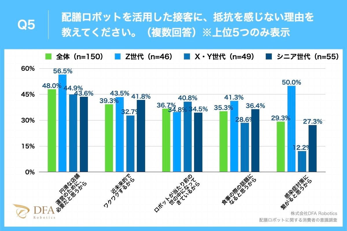 ■配膳ロボットの接客に抵抗感を感じる理由、X・Y世代、シニア世代は「なんとなく味気ない気がするから」が最多、Z世代は「比較的高いお金を払っているから」が最多の結果に