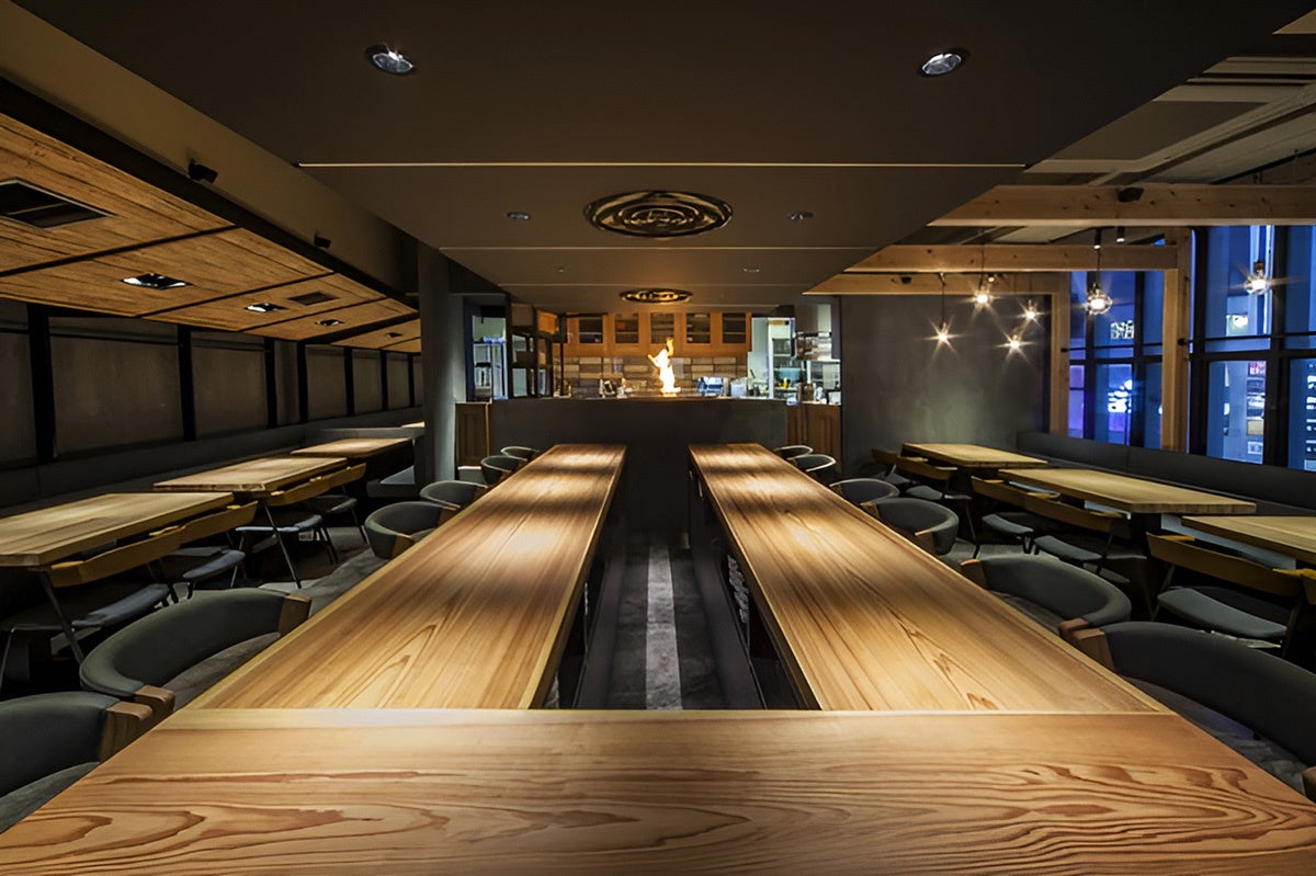 薪で焼き上げた拘りのお肉が堪能できるお店。コの字型カウンター中央の焚き火を眺めながら落ち着いたデートを。