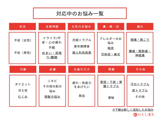 これらの背景を受け『わたし漢方』では、LINE公式アカウントの"お悩み"選択画面を症状に合わせてより選びやすくアップデートしたり、WEBサイトのリニューアルを実施するなど、おひとりおひとりのお悩みに寄り添う「相談サービス」の改善に取り組んできました。