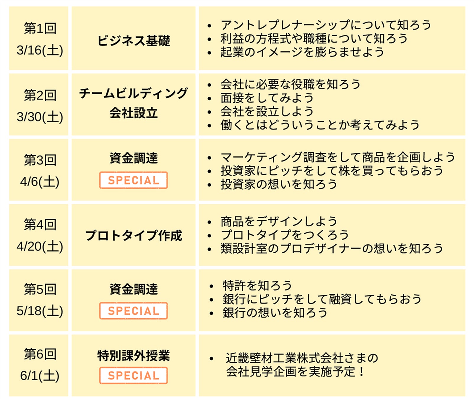 プログラムには、世界100ヵ国以上の小中学生85万人が学ぶ、アメリカ シリコンバレー発のアントレプレナーシップ教育「BizWorld」をIKIRU合同会社(BizWorld Japan)との協働により導入。類設計室の50年以上にわたる多事業経営の実績とネットワークに、BizWorldの26年のノウハウを掛け合わせたプログラムとなっています。