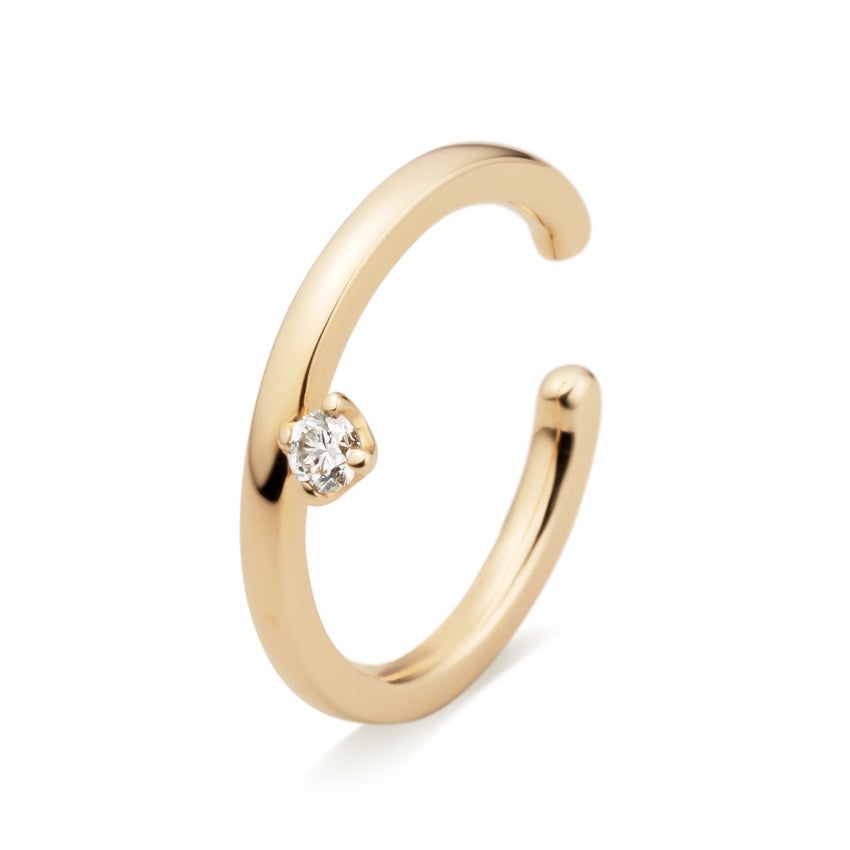 心を決めた、その瞬間に生まれる凛とした輝きを表現した『オプト』イヤーカフ。ストレートタイプのフープに、一粒のダイヤモンドをそっとセッティングしたデザインで、モダンな耳元を演出します。