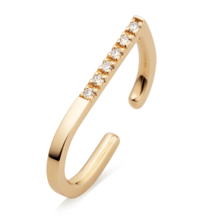 ストレートタイプのアームに、輝くダイヤモンドをそっとセッティングしました。お手持ちのリングとの重ね付けを楽しんだり、ピンキーリングとしてお使いいただくのもおすすめです。