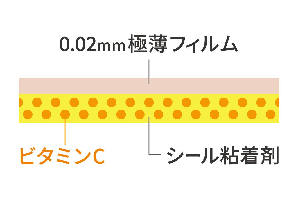 肌に接する最表面のシール粘着剤の部分には、ビタミンC誘導体(3-ラウリルグリセリルアスコルビン酸)を高濃度で配合しております(※)。