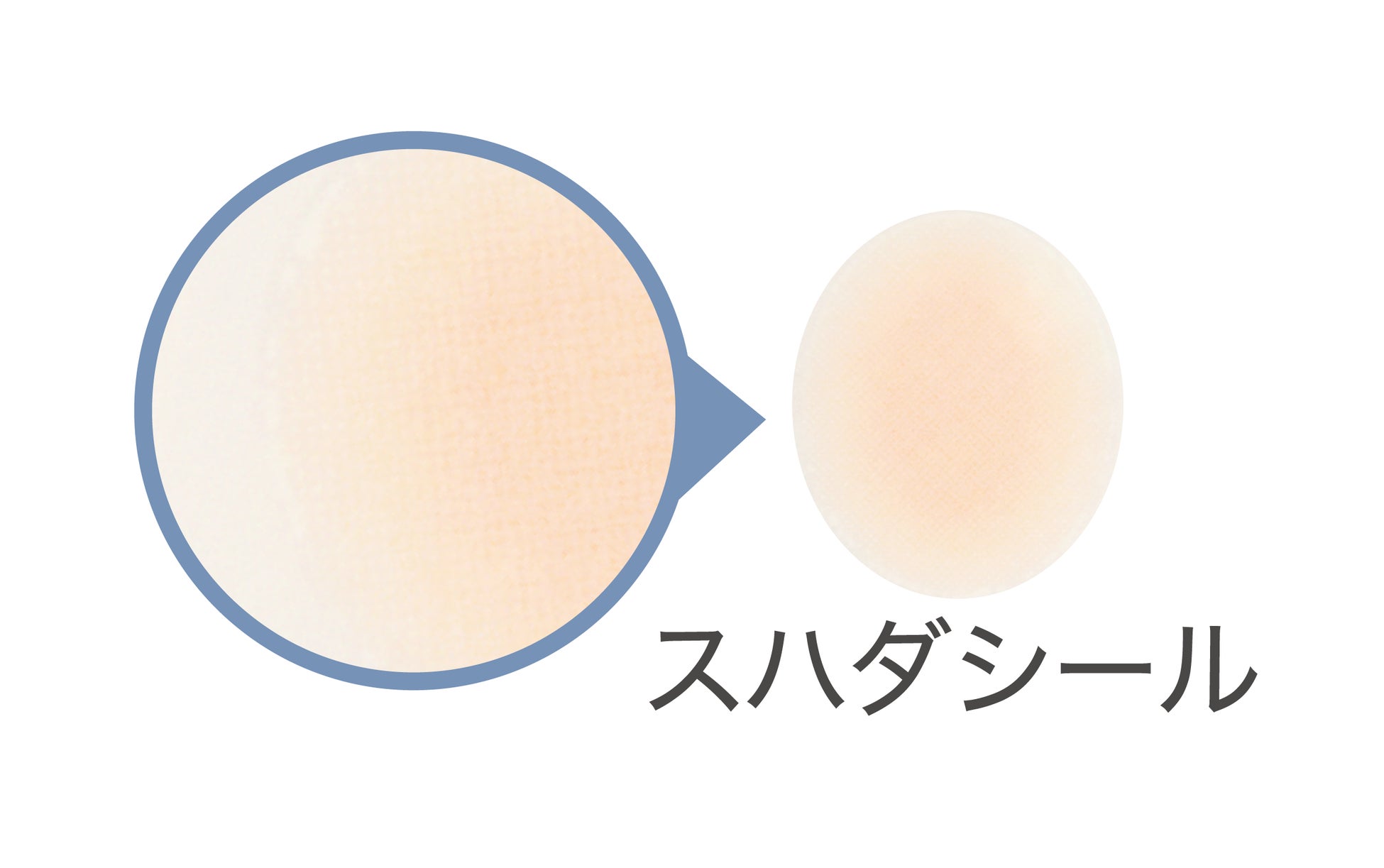 素肌シールは、シミ・ニキビ跡やきず跡、あざなどの気になる肌のお悩みを隠す肌に貼るシールです。人から見える箇所にあるきず跡やあざのために「おしゃれを楽しめない」「プールや結婚式・パーティを楽しめない」など、肌のお悩みは様々な場面で心理的な負担となっています。貼っている事をまわりに気づかれず、肌悩みを忘れて普段どおりの振る舞いができるストレスフリーを目指して、機能性フィルム・シールメーカーである株式会社コスモテックの技術を活用し開発しました。どんな肌にも自然にフィットしてなじみが良く、まるで素肌のような仕上がりで”快適なつけ心地”と”カバー力”を両立しています(特許取得済)。