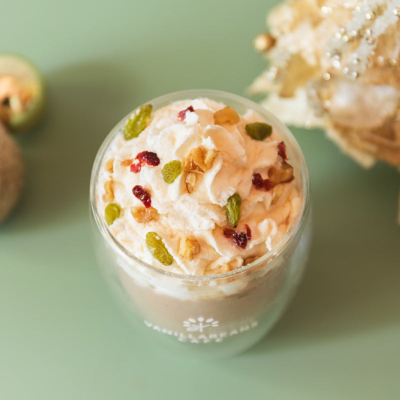 クリスマスの代表菓子”シュトーレン”をイメージした、シナモンの香りが広がる風味豊かでスパイシーなフローズンドリンクです。フルーティな味わいが特徴のエクアドル産カカオと、酸味やクセの少ないガーナ産カカオをブレンドしたチョコレートに、オレンジピールやジンジャーなど加えた今だけの美味しさです。トッピングのくるみやドライフルーツでクリスマスカラーをイメージした目にも美味しい1杯です。