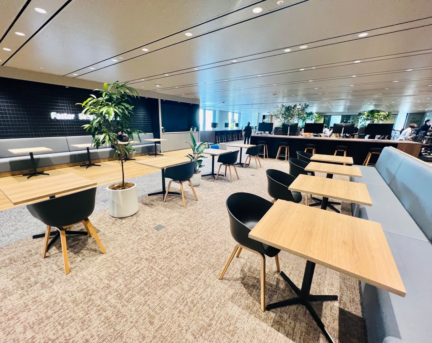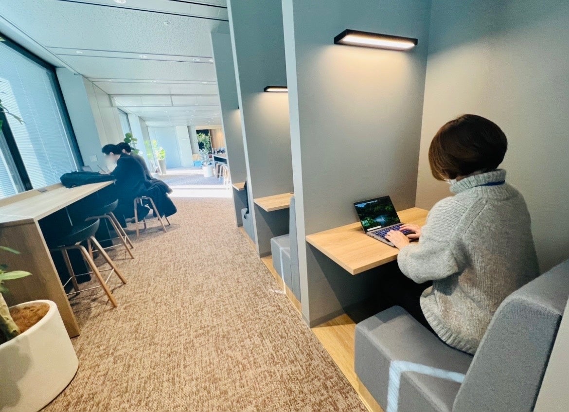 また、入居したビルには、テナントが共同で利用可能な「ウェルビーイングフロア」が設けられており、そこのオープンフロアではテナント同士の交流も期待されています。